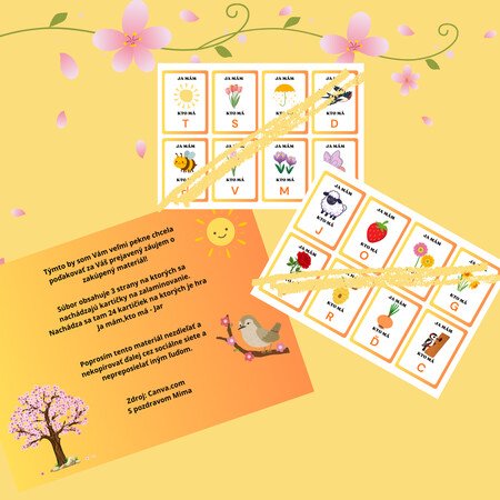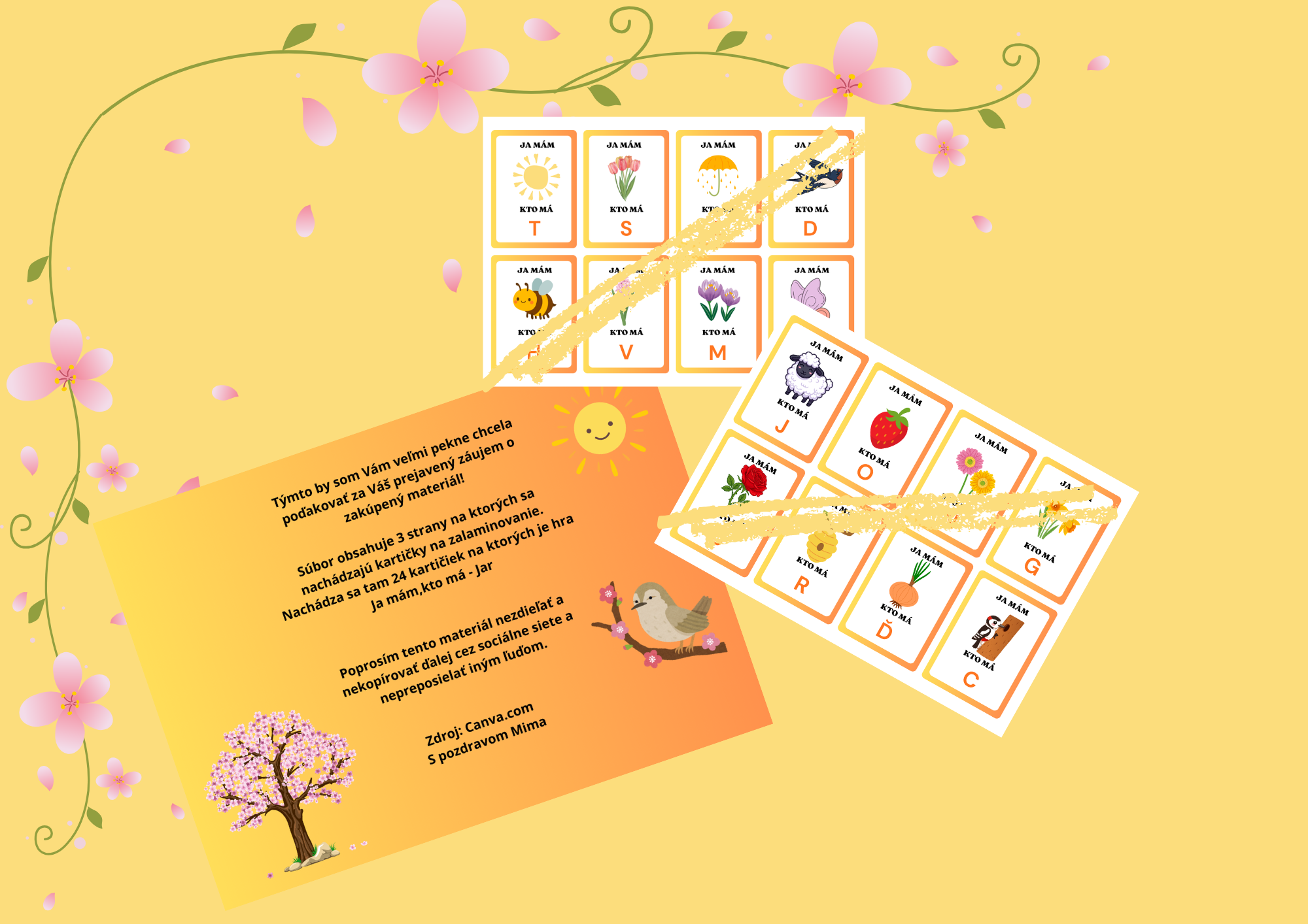 Nachádza sa tam 24 kartičiek na ktorých je hra Ja mám, kto má - Jar