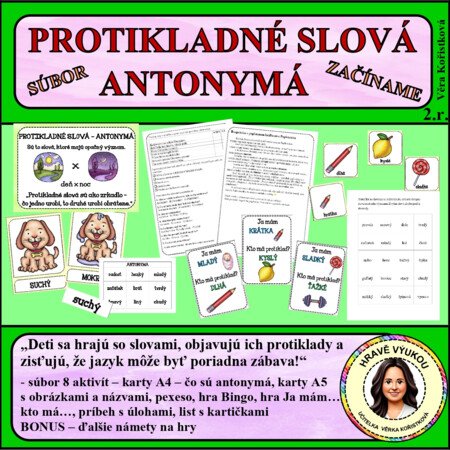 - Možno prepojiť s učivom prídavných mien, slov opačného významu, rozširovaním slovnej zásoby.