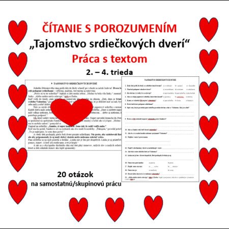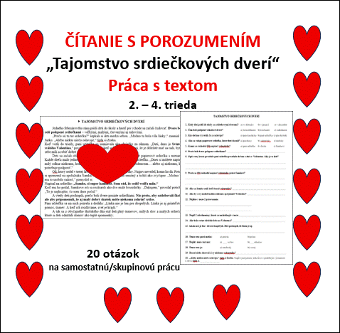 Práca s textom a čítanie s porozumením patria medzi najdôležitejšie zručnosti, ktoré si žiaci na prvom stupni osvojujú. Valentínsky príbeh Tajomstvo srdiečkových dverí ponúka ideálnu príležitosť rozvíjať tieto schopnosti prirodzene a hravo. Text je krátky, jasný a emocionálne blízky deťom, čo uľahčuje sústredenie aj porozumenie. Po tichom čítaní môžu žiaci pracovať samostatne, vyhľadávať informácie v texte a odpovedať na otázky, ktoré ich vedú k premýšľaniu o deji aj o správaní postáv. V nižších ročníkoch je vhodné zaradiť skupinovú prácu, ktorá podporuje spoluprácu, komunikáciu a vzájomnú pomoc medzi žiakmi. Spoločná diskusia o tom, ako sa cítil Samko a prečo je dôležité povedať niekomu niečo milé, prirodzene rozvíja empatiu a emocionálnu inteligenciu. Text sa výborne hodí aj na tvorivé aktivity – deti môžu vytvoriť vlastné valentínky, napísať odkaz spolužiakovi alebo nakresliť scénu z príbehu. Takto vedená hodina spája čitateľské zručnosti s hodnotami, ktoré robia triedu príjemnejším miestom. Valentín sa tak stáva nielen sviatkom lásky, ale aj dňom priateľstva, podpory a dobrých skutkov.