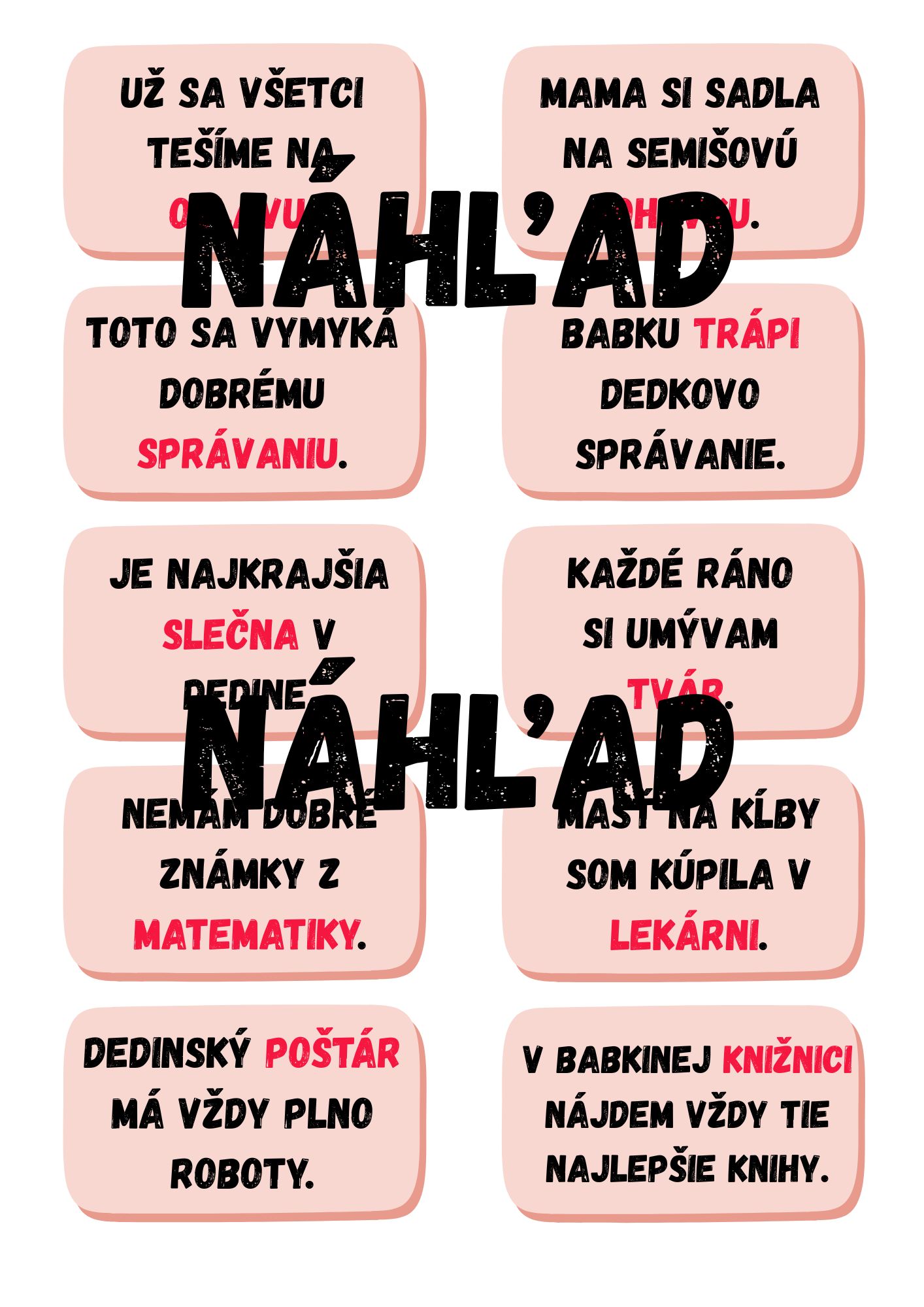 🔹 Autokorektívne kartičky – slová v kontexte