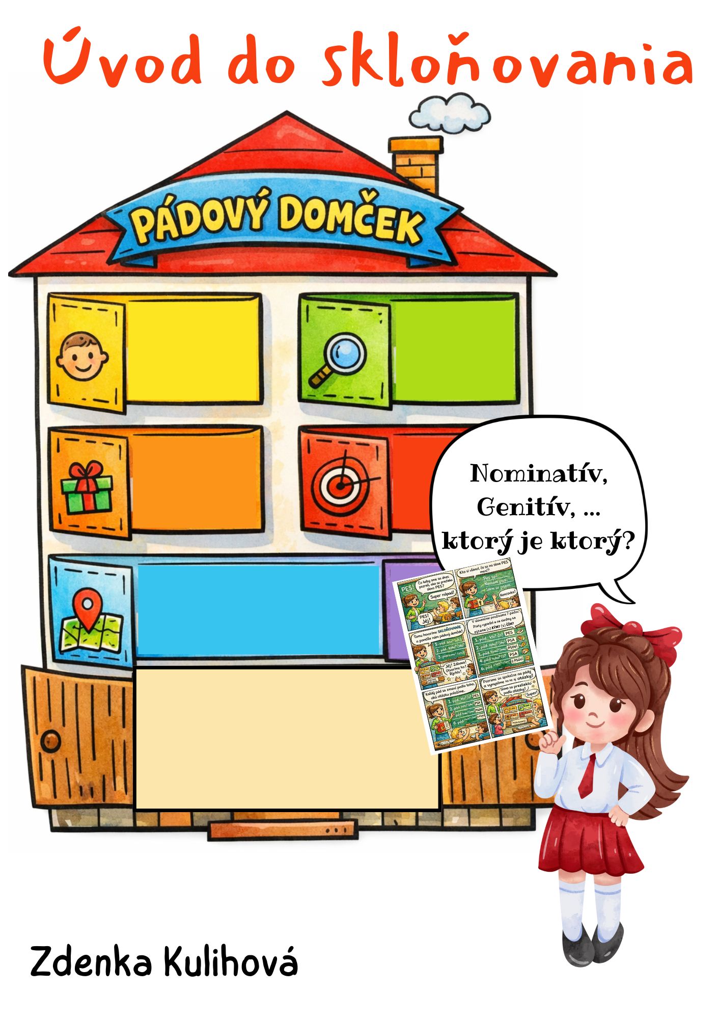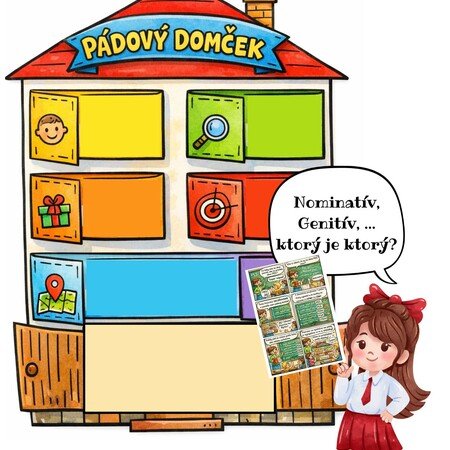 Materiál obsahuje prezentáciu, kde je postupne napísané, ako pracovať so skloňovacím domčekom. Treba vystrihnúť jednotlivé rámiky pre pády a nalepiť ich podľa poradia do domčeka. V prípade, ak nemajú žiaci zošit na teóriu z gramatiky, môžu si pomocné predložky, ktoré sú v prezentácii napísať aj do týchto otváracích okienok. V súbore je aj jednostranový komiks na prečítanie.