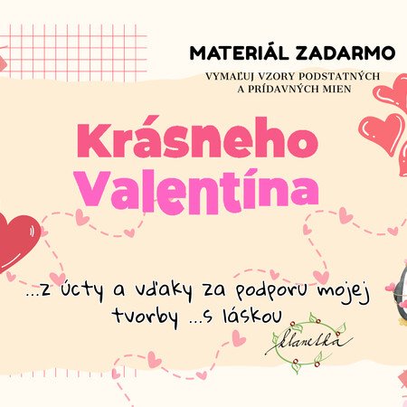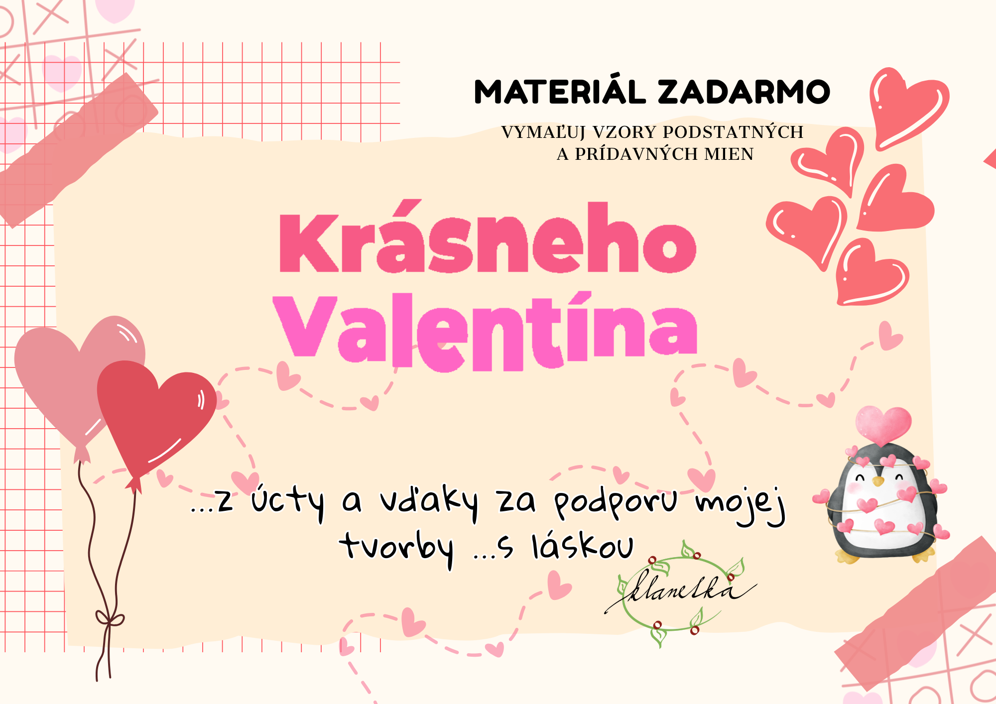 Valentín vo vzoroch/ podstatné mená, prídavné mená, puzzle, vzory