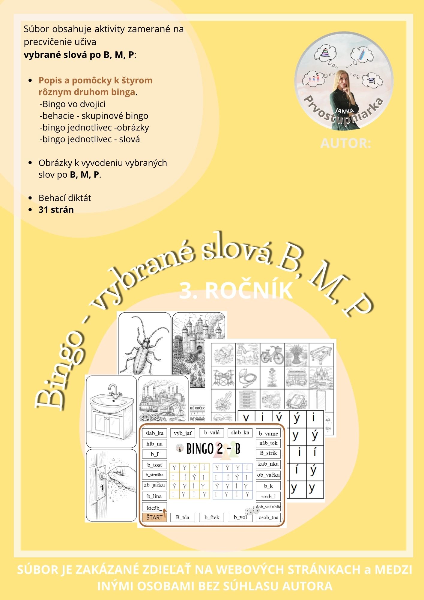 Súbor obsahuje aktivity zamerané na precvičenie učiva vybrané slová po B, M, P: