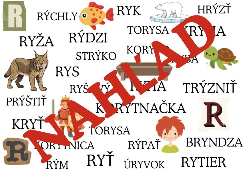 -7 plagátov s vybranými slovami a napovednými obrázkami