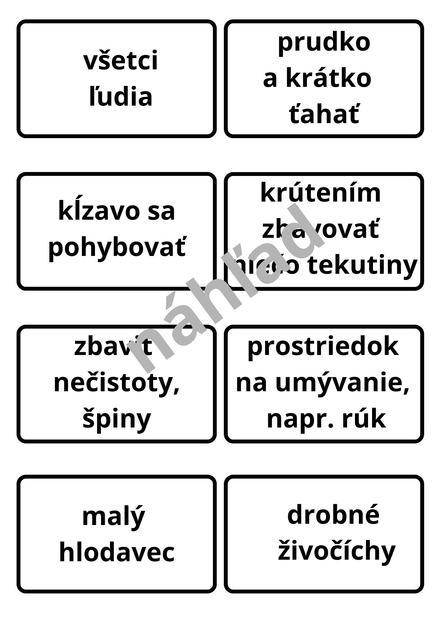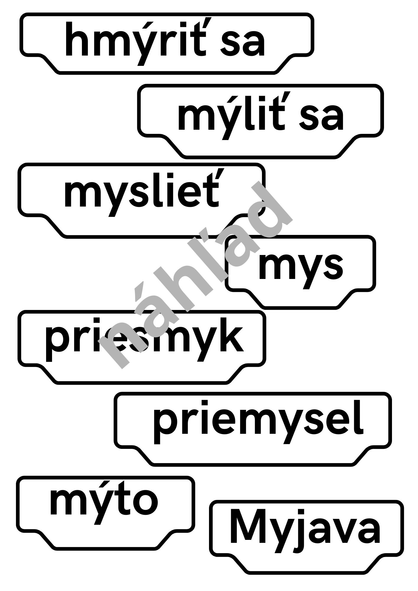 Materiál využijete ako nápomocné obrázky pri vyvodzovaní vybraných slov (4 slová na A4), ako behací diktát (kartičky s vynechaným y/ý aj celé slovo), ako aktivitu, kedy žiaci priraďujú k obrázkom ich pomenovania alebo podľa opisu majú priradiť dané vybrané slovo, ako pomôcku na nalepenie do zošita pre žiakov (pre 3 žiakov na 1 A4)... Možností je naozaj veľa :)