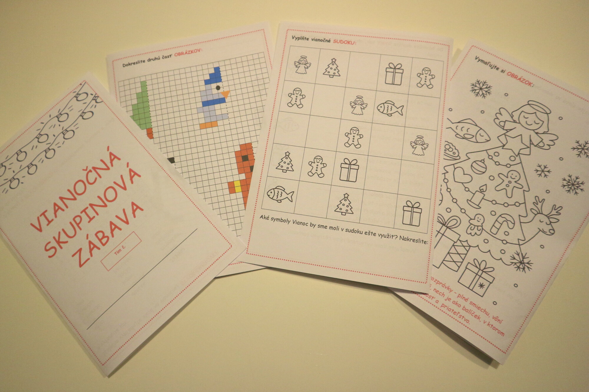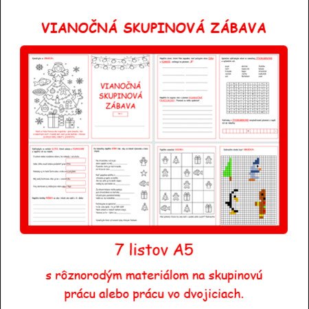 Vianočná skupinová zábava je vlastne knižôčka, ktorá obsahuje 7 originálnych strán A5 plných zábavy, spolupráce a sviatočnej atmosféry!