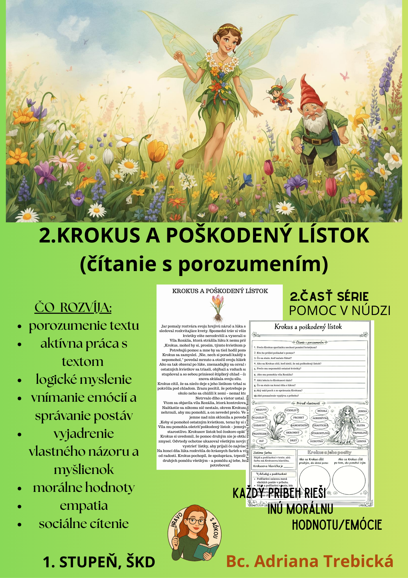 Materiál podporuje čítanie s porozumením, emocionálnu inteligenciu a hodnotové učenie. Každý diel možno používať samostatne alebo ako súčasť dlhodobejšej práce so žiakmi.