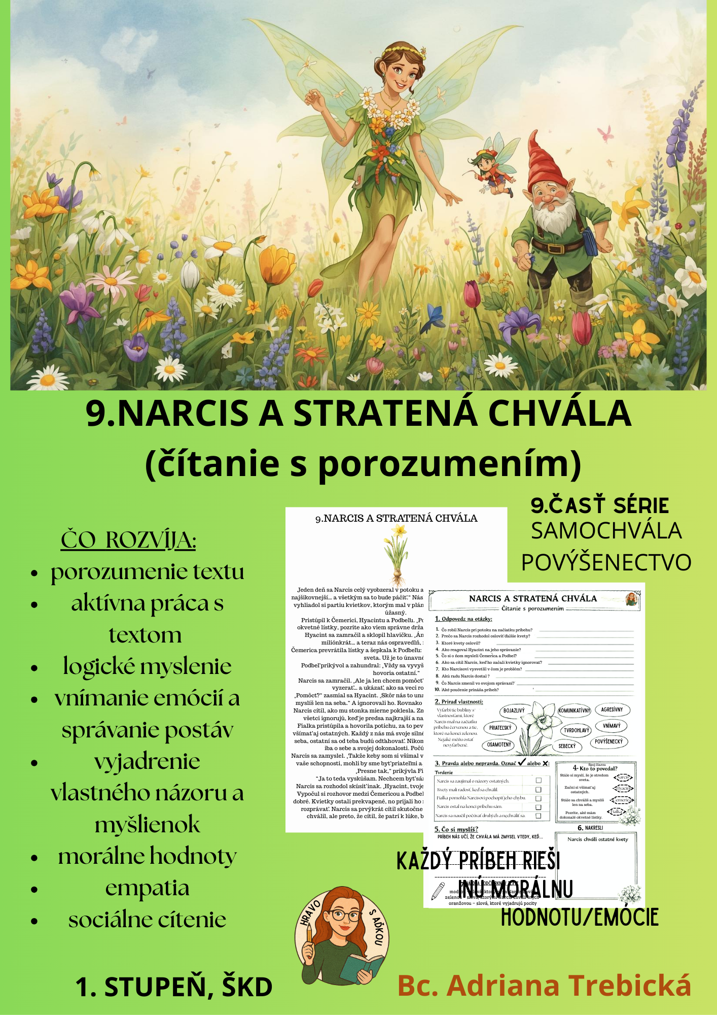 „Narcis – Samochvála a povýšenectvo“ je ďalším príbehom zo série 20 autorských rozprávaní o jarných kvetoch. Citlivo otvára tému prehnanej pýchy, porovnávania sa a potreby uznania.