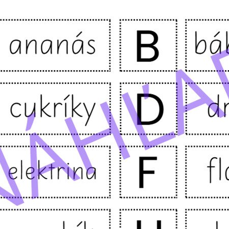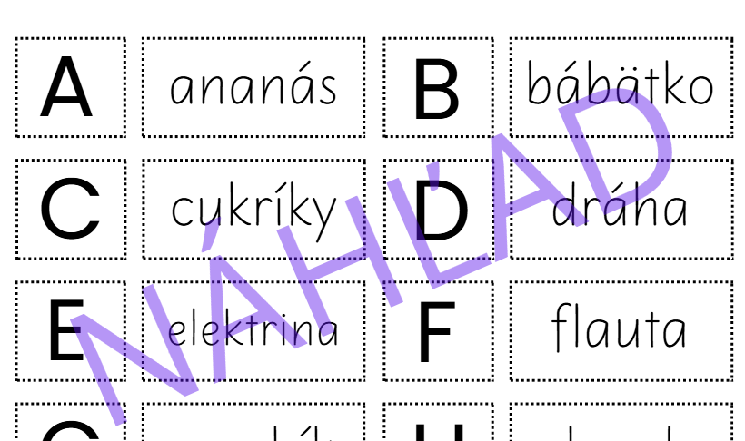 Každé písmeno má vlastnú kartičku a k nemu kartičku so slovami, ktoré sa začínajú daným písmenom.