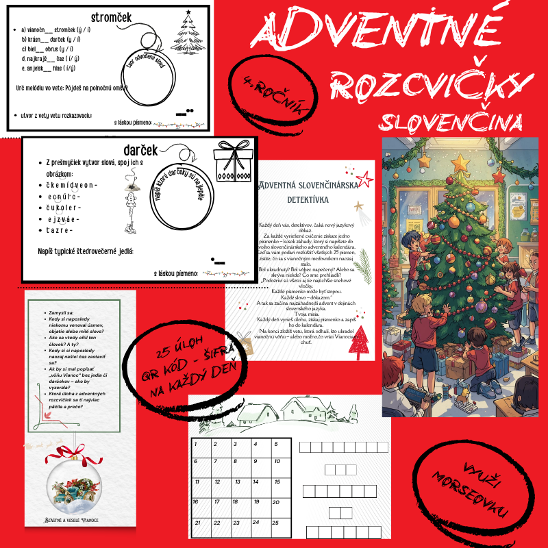 Adventné rozcvičky - slovenčina -4.ročník/ Vianoce, posolstvo, ranné kruhy, gramatika, opakovanie