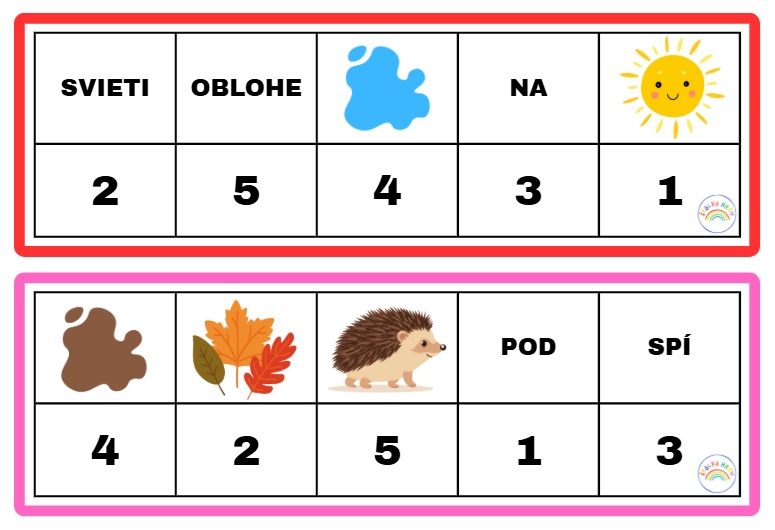 Úlohou dieťaťa je prepísať vetu z kartičky podľa určenej postupnosti.