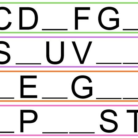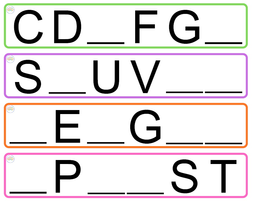 Úlohou dieťaťa je doplniť chýbajúce písmenká z abecedy.
