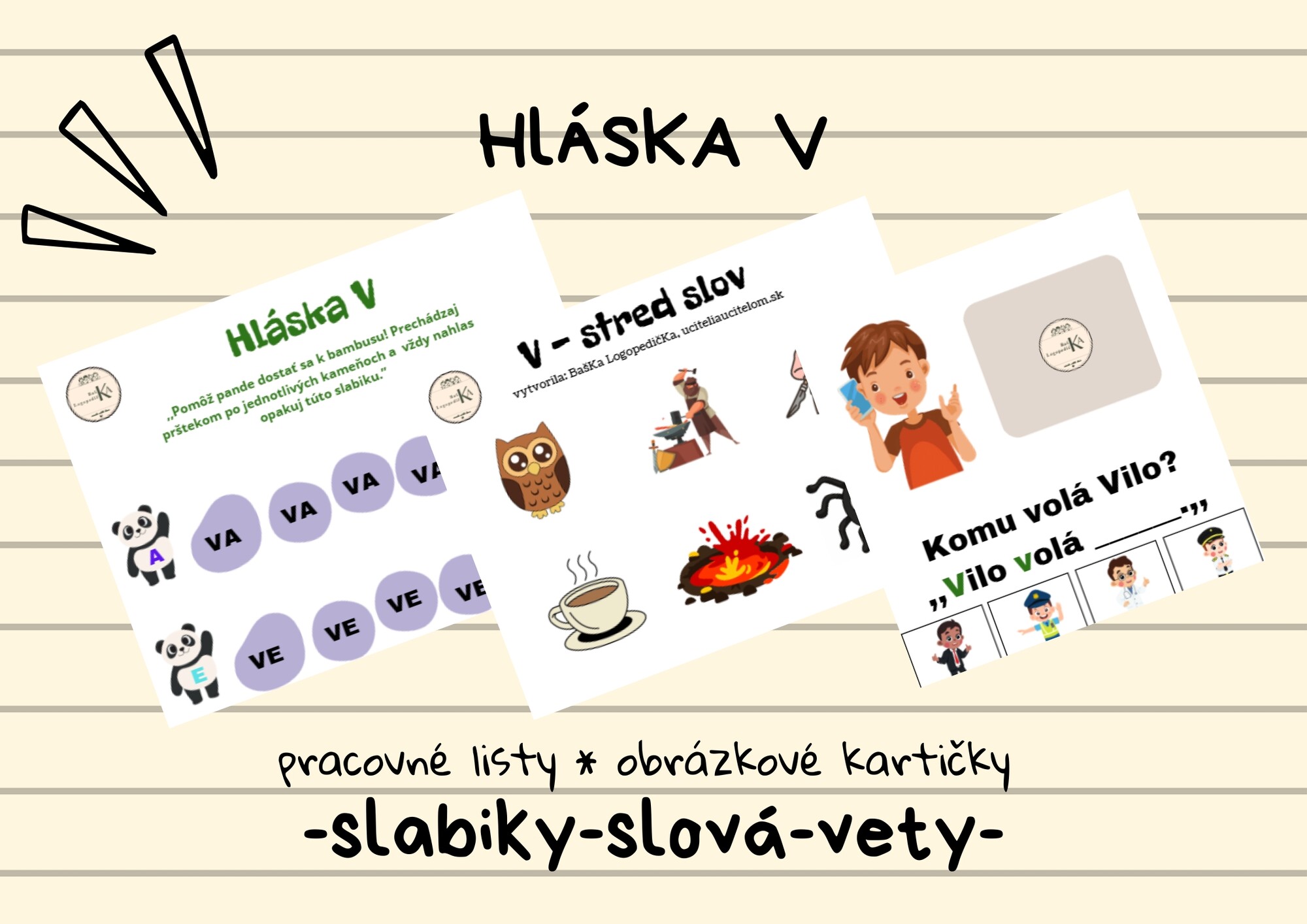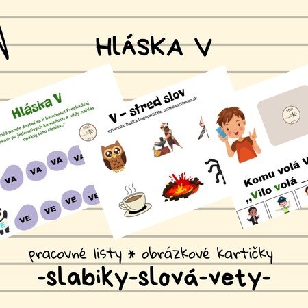 - 2 pracovné listy na nácvik hlásky V vo vetách.