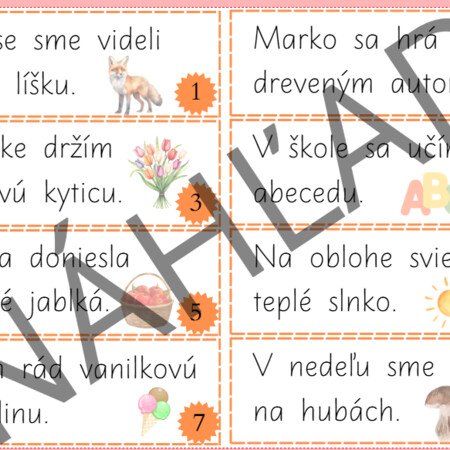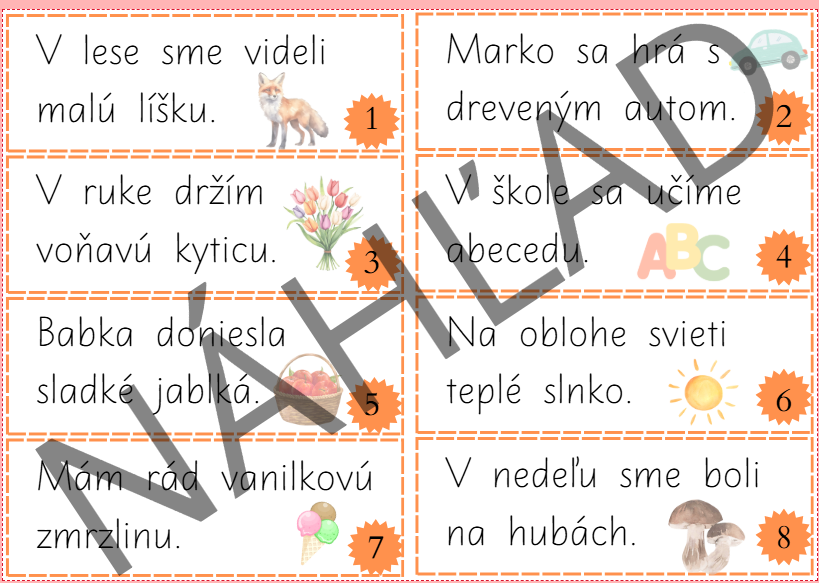 - Na záver si skontrolujú text podľa očíslovaných kartičiek.