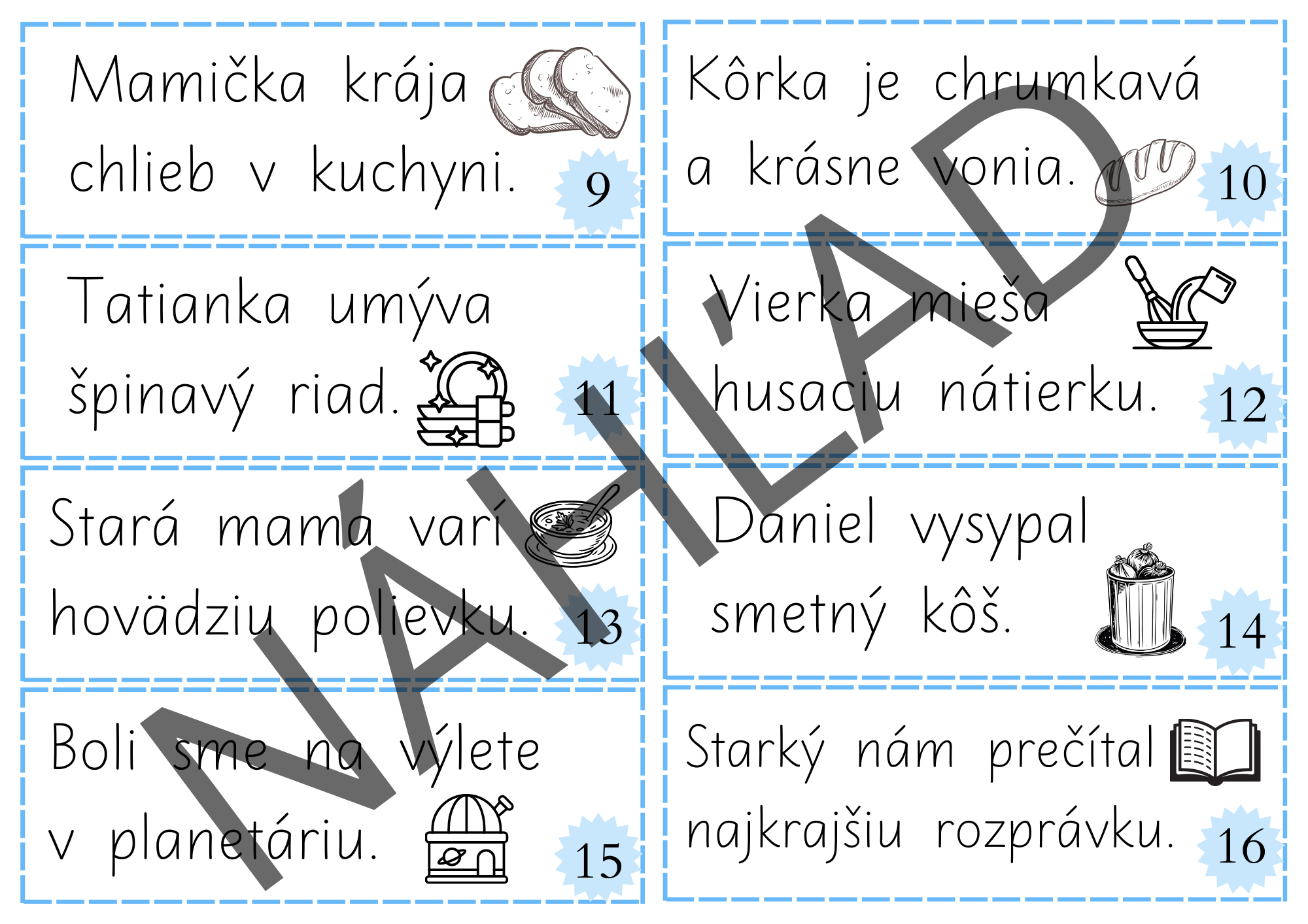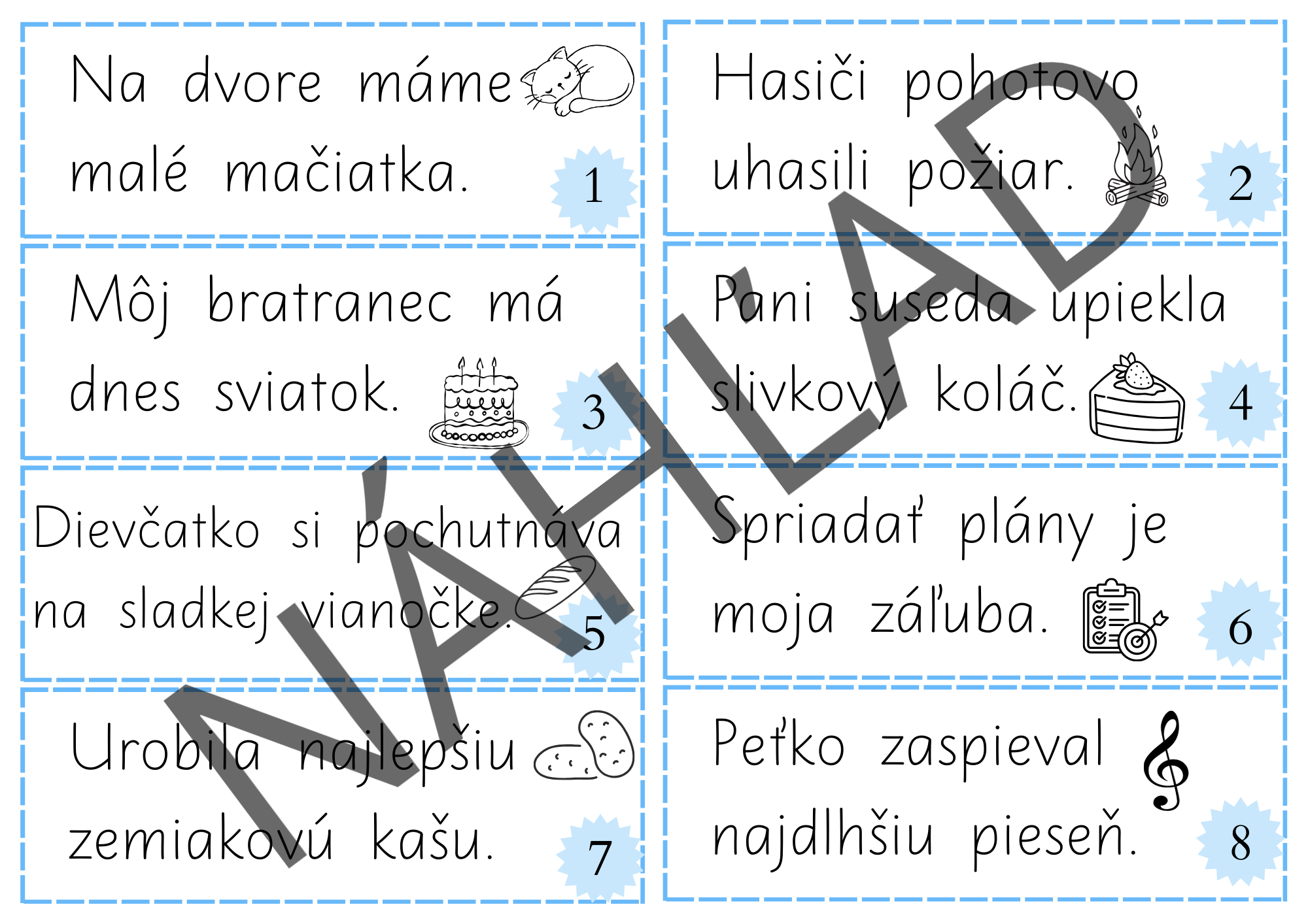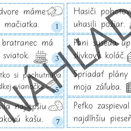 - Na záver si skontrolujú text podľa očíslovaných kartičiek.