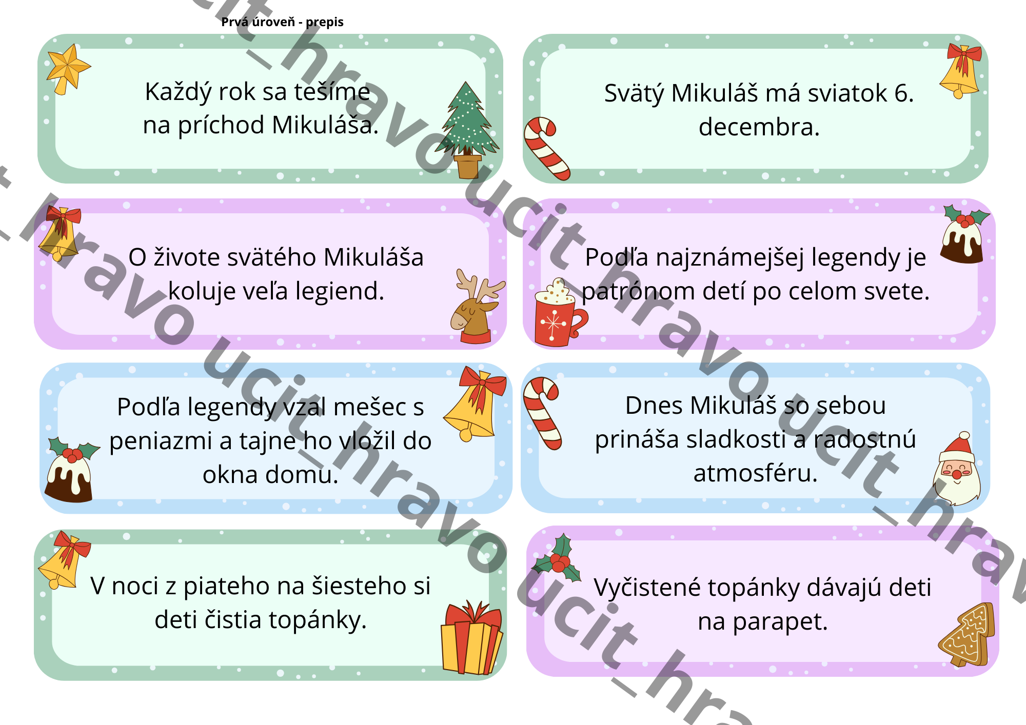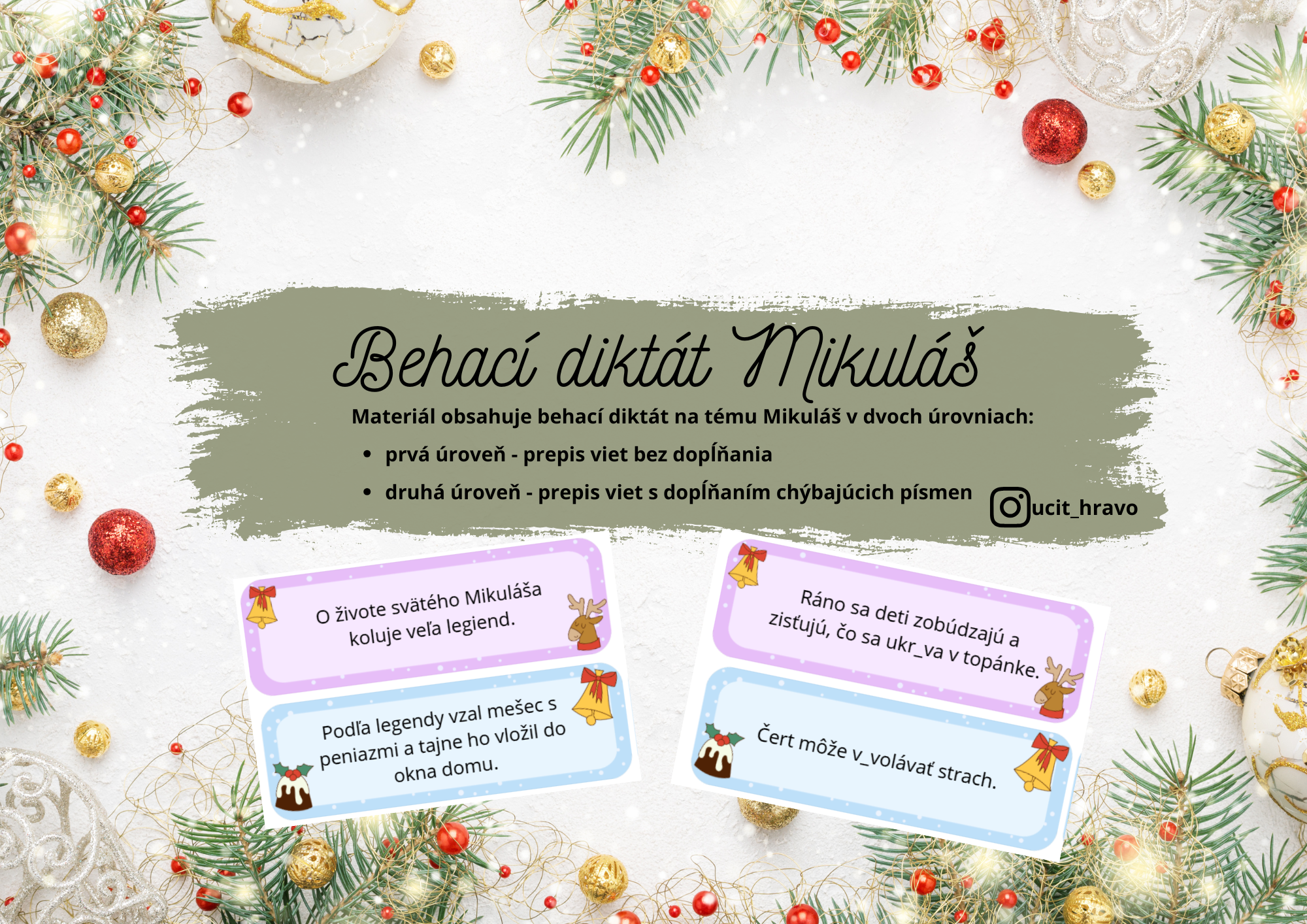 - Materiál obsahuje behací diktát na tému Mikuláš v dvoch úrovniach: