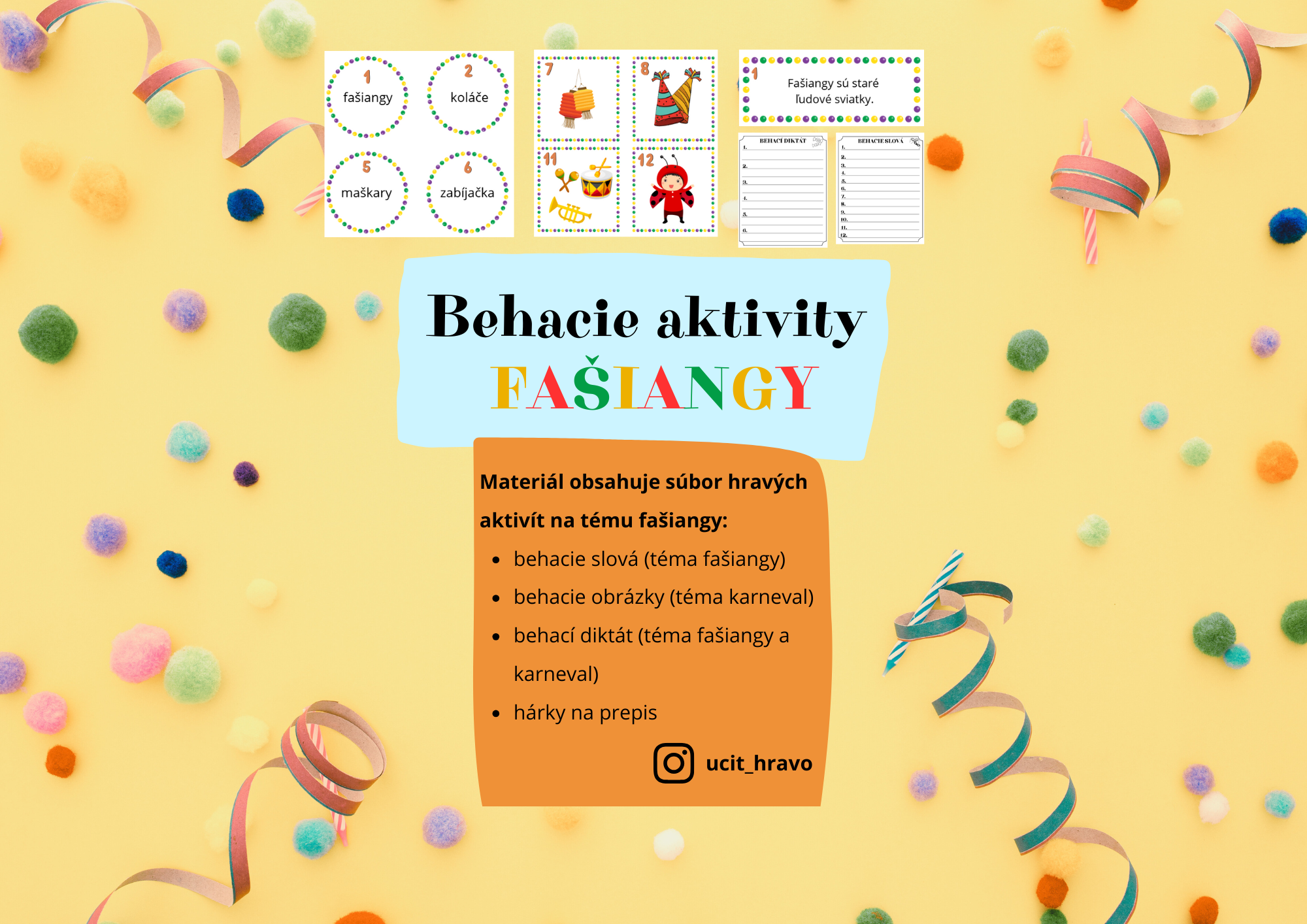 - Materiál obsahuje súbor hravých aktivít na tému fašiangy:
