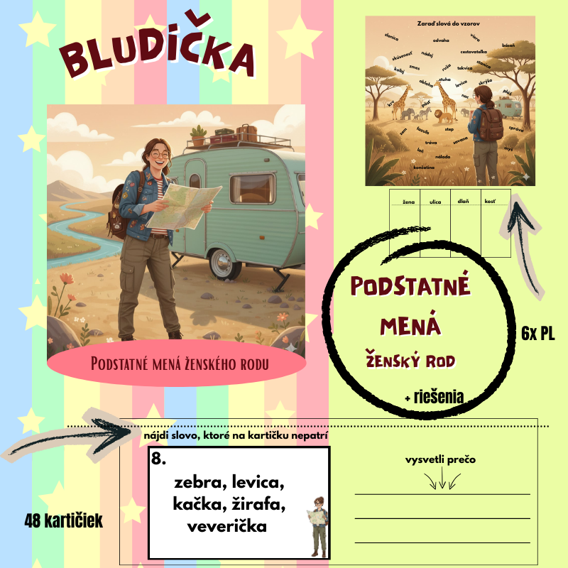 - Materiál je ideálny na opakovanie a upevňovanie učiva ženského rodu podstatných mien bez nudného memorovania vzorov – žiaci na ne prichádzajú sami.