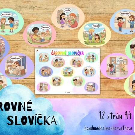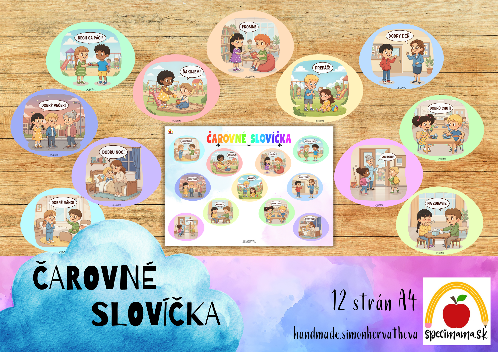 Naučte deti, že slušnosť je skutočné kúzlo! Tento veselý ilustrovaný súbor je ideálnou pomôckou pre rodičov, učiteľov v materských školách a pedagógov na 1. stupni ZŠ. Pomáha deťom prirodzene pochopiť, kedy a prečo používať zdvorilostné frázy.