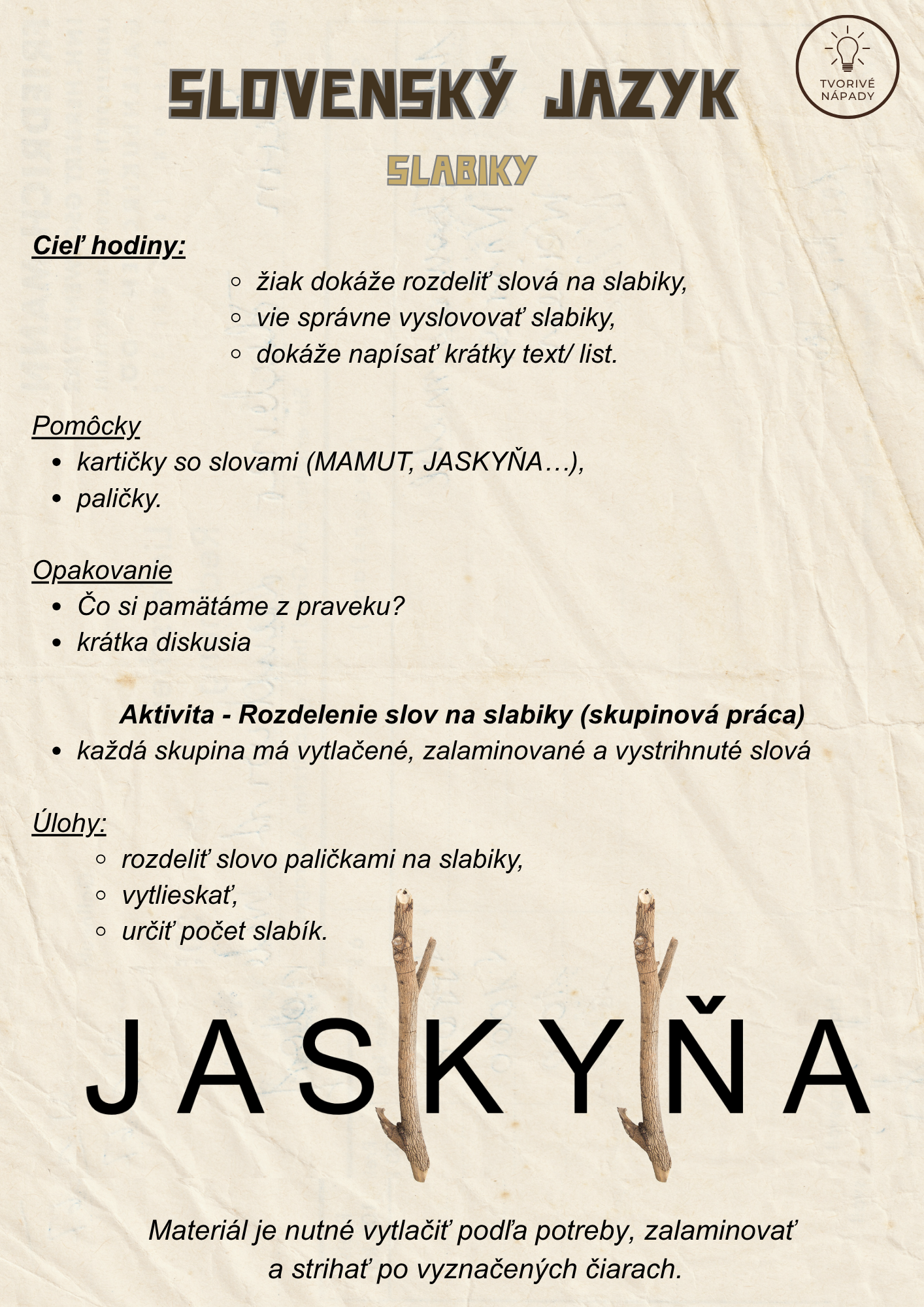 Slovenský jazyk – slabiky a tvorivé písanie
