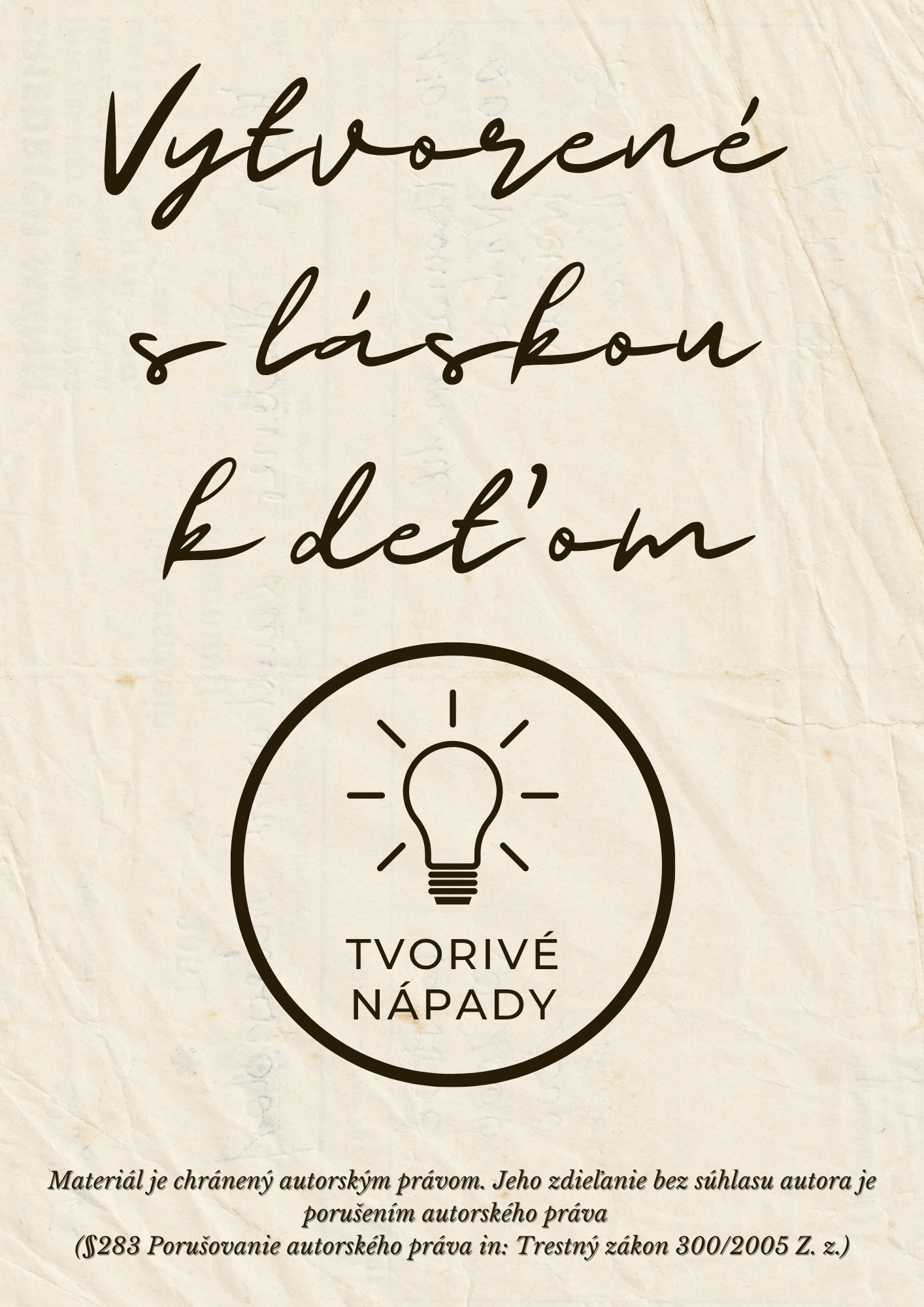 Materiál je chránený autorským právom. Jeho zdieľanie bez súhlasu autora je porušením autorského práva (§283 Porušovanie autorského práva in: Trestný zákon 300/2005 Z. z.)