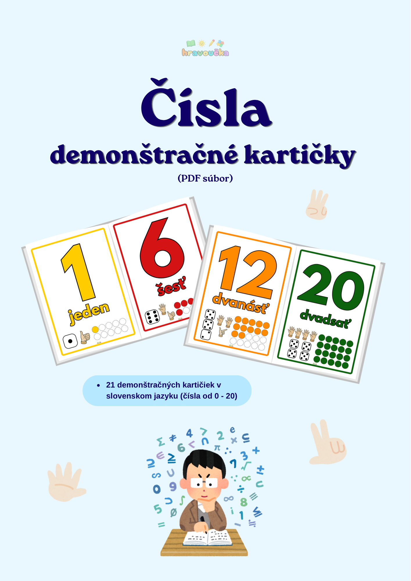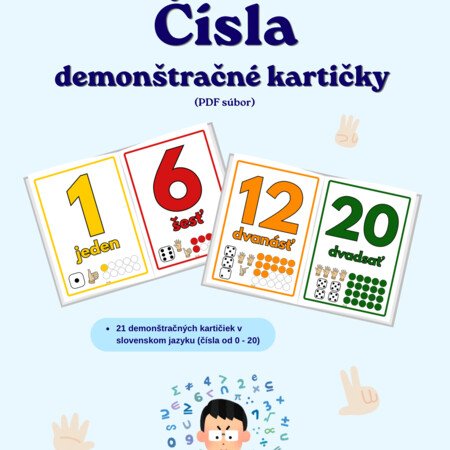 Súbor obsahuje 21 veľkých demonštračných kariet s číslami od 0 do 20 v slovenskom jazyku.