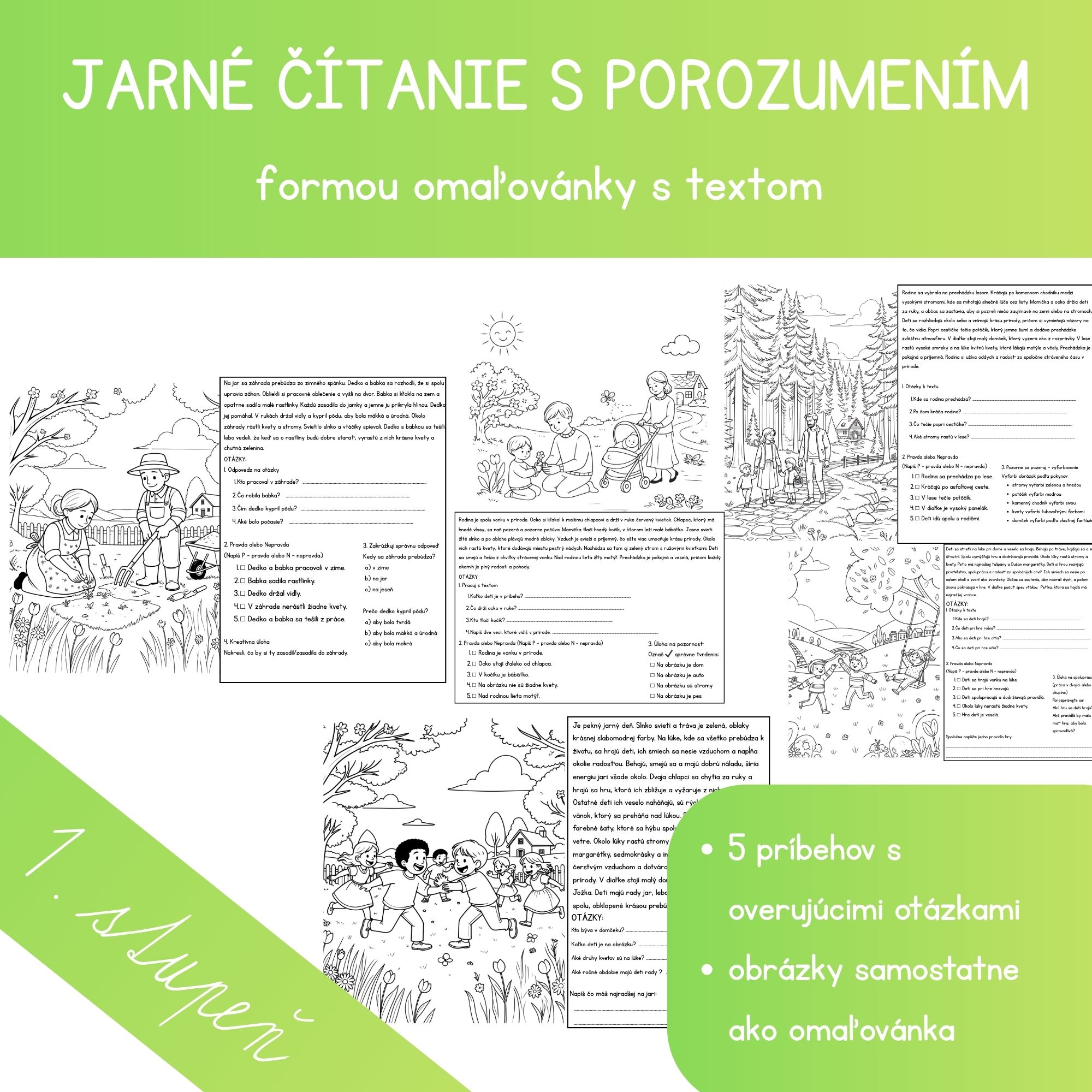 pripravila som pre teba materiál Čítanie s porozumením s jarnou tematikou. Nachádza sa tu 5 textov s obrázkami, ku ktorým sú úlohy, ktoré vyplývajú z textu - otázky, pravda nepravda, vyfarbovanie podľa pokynov...