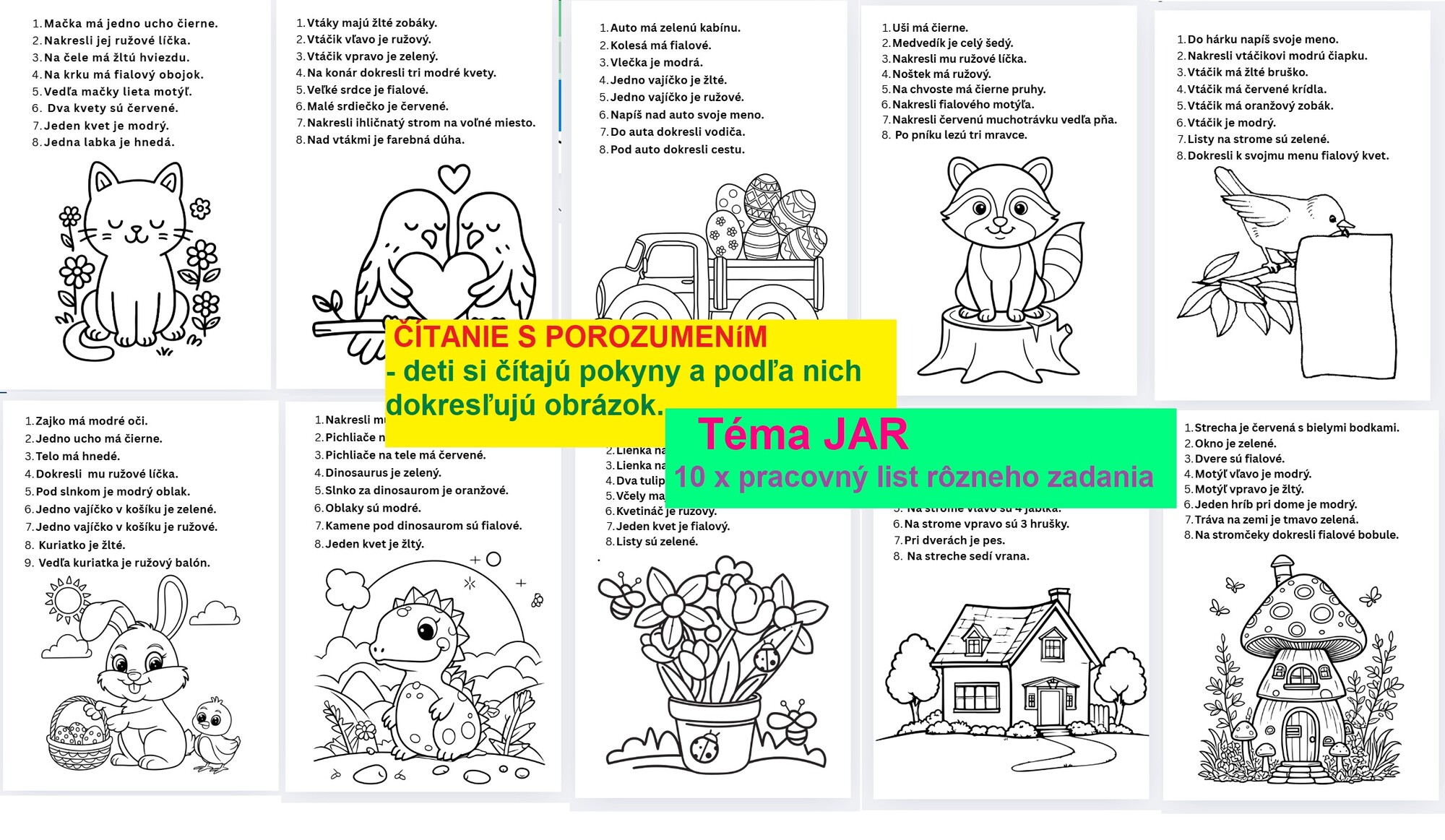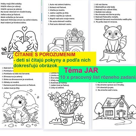 Samostatná práca pre deti zameraná na čítanie s porozumením na tému JAR.