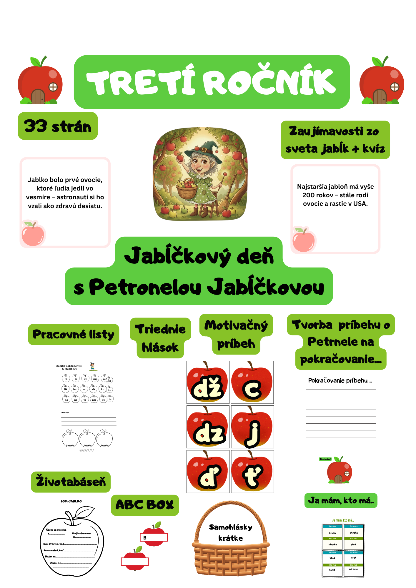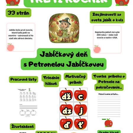 Tematický deň jablka, prepojenie predmetov slovenského jazyka, čítania, matematiky.