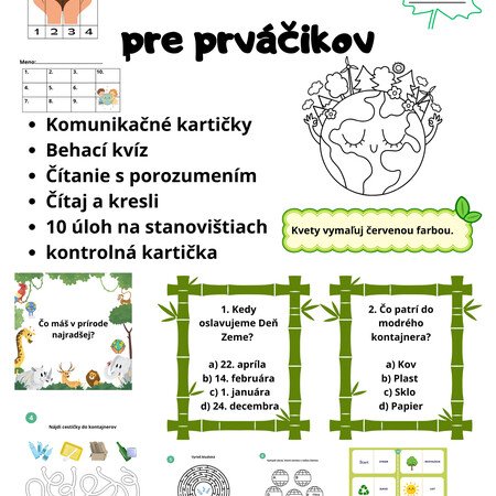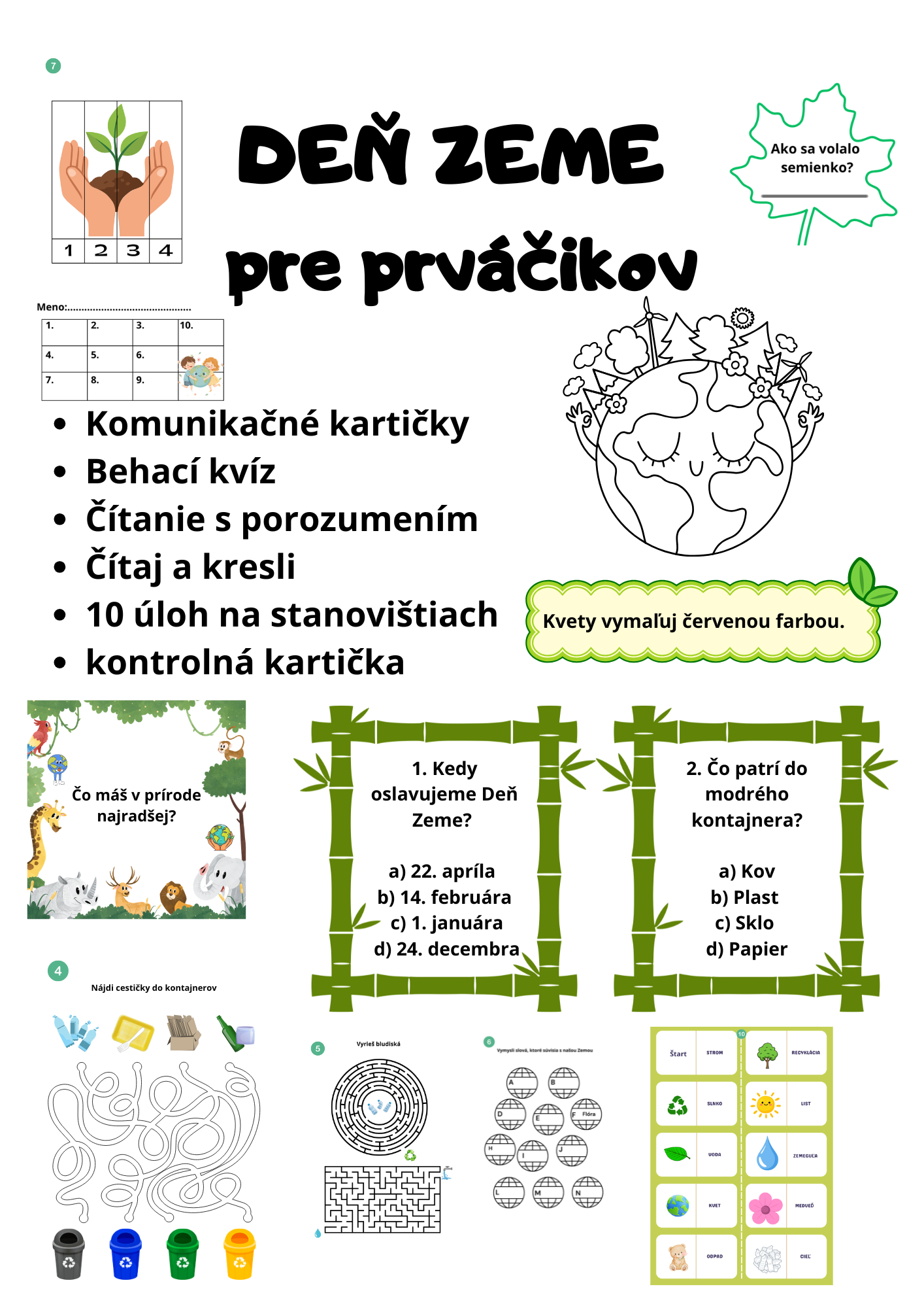 - 10 úloh na stanovištiach - strany odporúčam zalaminovať, žiaci po splnení úlohy vyriešenú úlohu vyčistia handričkou, aby bolo stanovište pripravené pre dalších žiakov. Splnené úlohy sa odfajknú v kontrolnej kartičke.