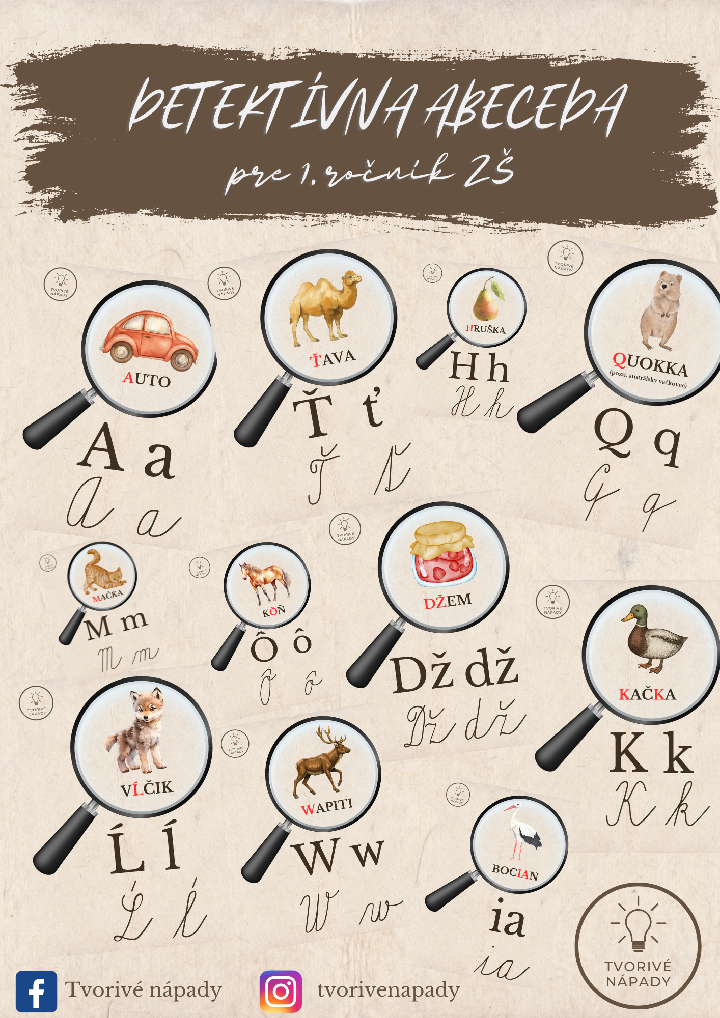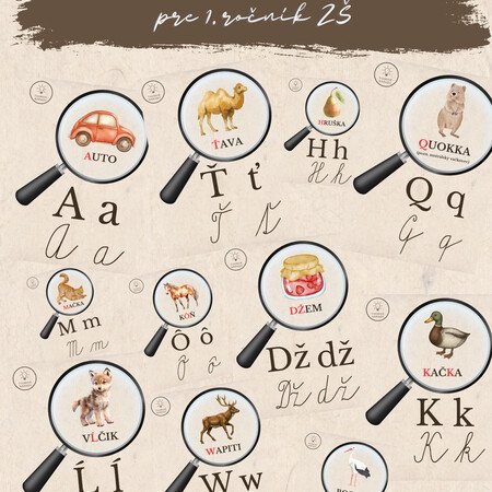Materiál obsahuje: Písmená slovenskej abecedy (nápovedné obrázky s písmenami).