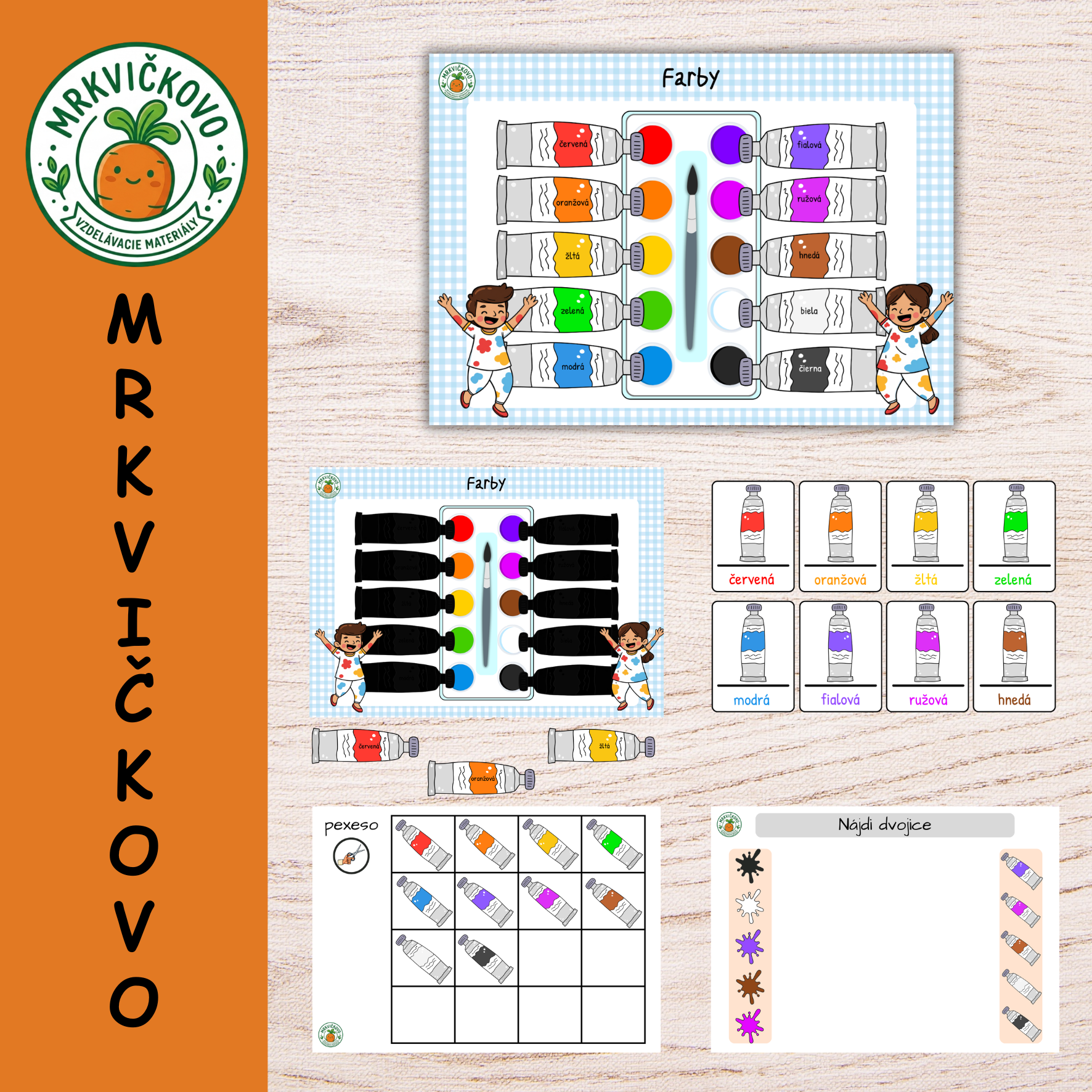 Vstúpte do sveta pestrých odtieňov! Naša edukačná pomôcka „Farby“ je hravým sprievodcom pre najmenších, vďaka ktorému si deti prirodzene osvoja názvy základných farieb, precvičia si jemnú motoriku a potrénujú logické myslenie.