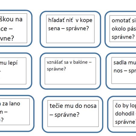Pracovný list je určený na precvičenie frazeologizmov hravou a premýšľavou formou. Žiaci hodnotia správnosť rôznych slovných spojení, čím si upevňujú jazykové vedomie a chápanie obraznosti slovenského jazyka.