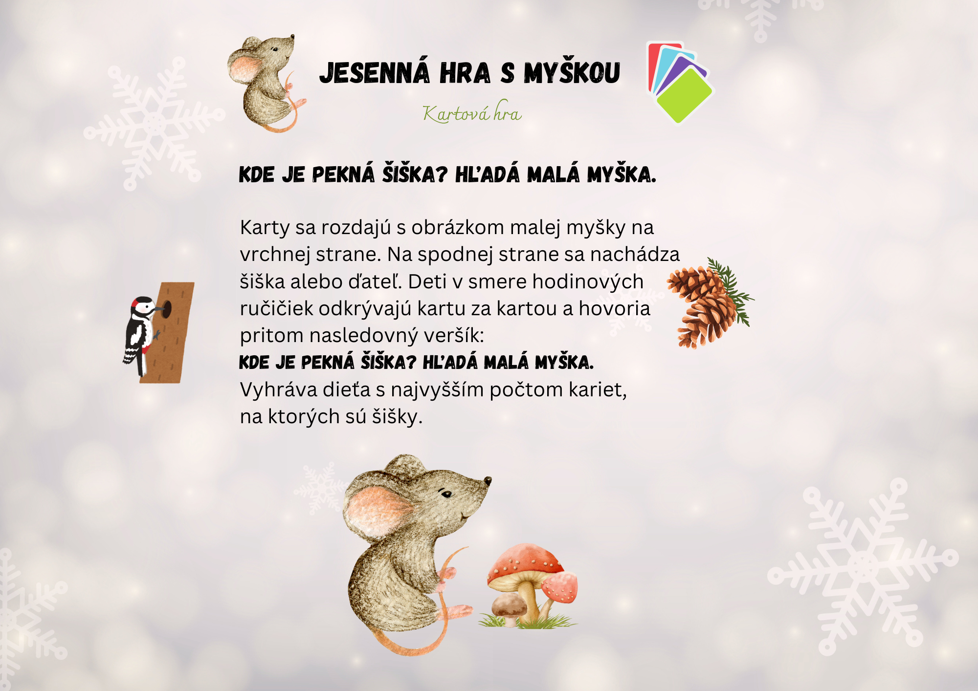 9. stolová kartová hra o myške, ktoré hľadá šišky v lese