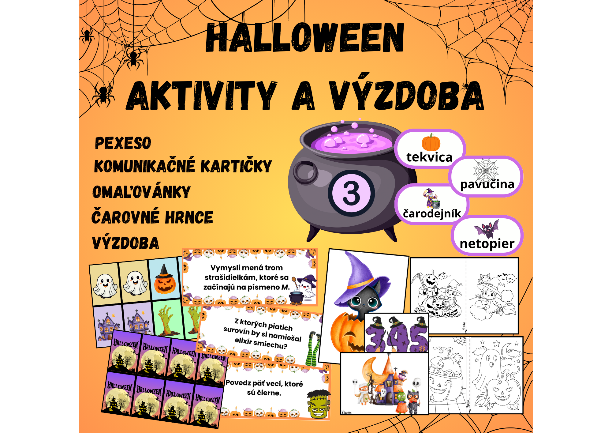 Ponúkam na predaj súbor s aktivitami na Halloween vhodný pre 1. stupeň, do ŠKD, do MŠ, na triednické hodiny a na ranné kruhy.