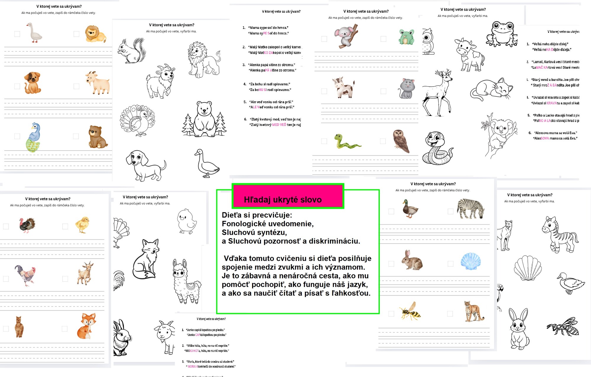 Študijný materiál: "Hľadaj ukryté slovo - fonologické uvedomovanie, sluchová syntéza".