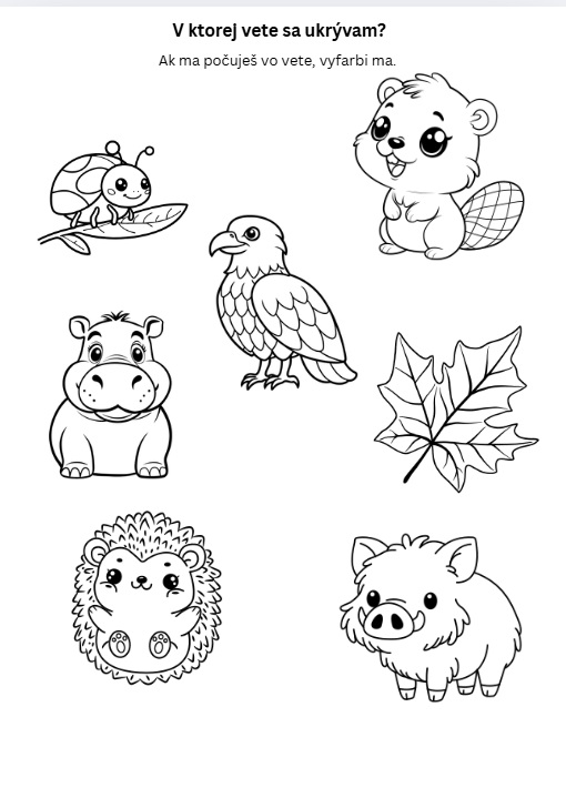 - Jednoduchšia forma - pracovný list s obrázkami na vyfarbovanie, jedno zviera vždy ostáva - ktoré?