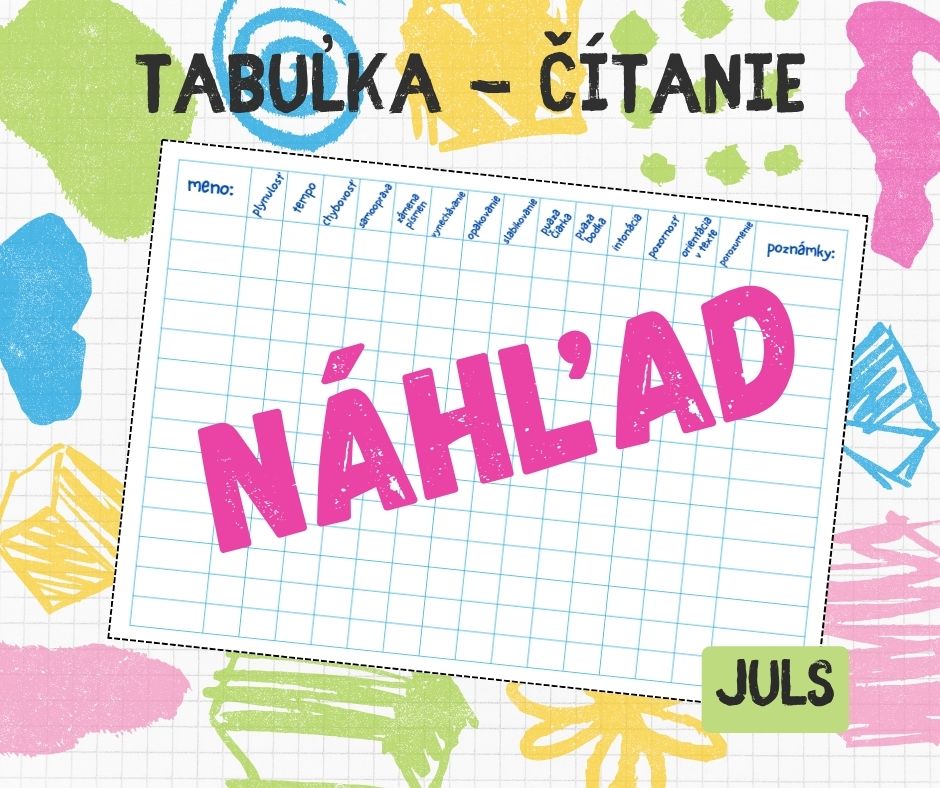 Tabuľka na hodnotenie čítania je praktický materiál určený na priebežné sledovanie individuálneho čítania žiakov. Obsahuje prehľadné kritériá ako plynulosť, tempo, chybovosť, samooprava, intonácia, pozornosť, orientácia v texte či porozumenie, vďaka čomu učiteľovi uľahčuje zaznamenávanie pokroku aj oblastí, ktoré treba ďalej rozvíjať.
