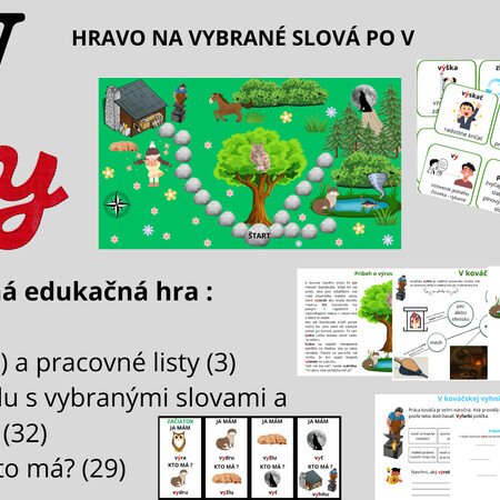 Hravo na vybrané slová po V je zábavná hra, prostredníctvom ktorej si deti môžu osvojiť alebo precvičiť vybrané slová po v. Hra obsahuje pútavý herný plán.
