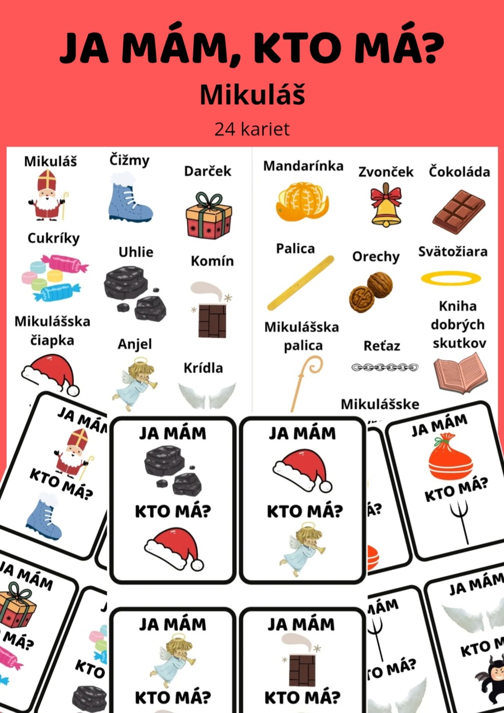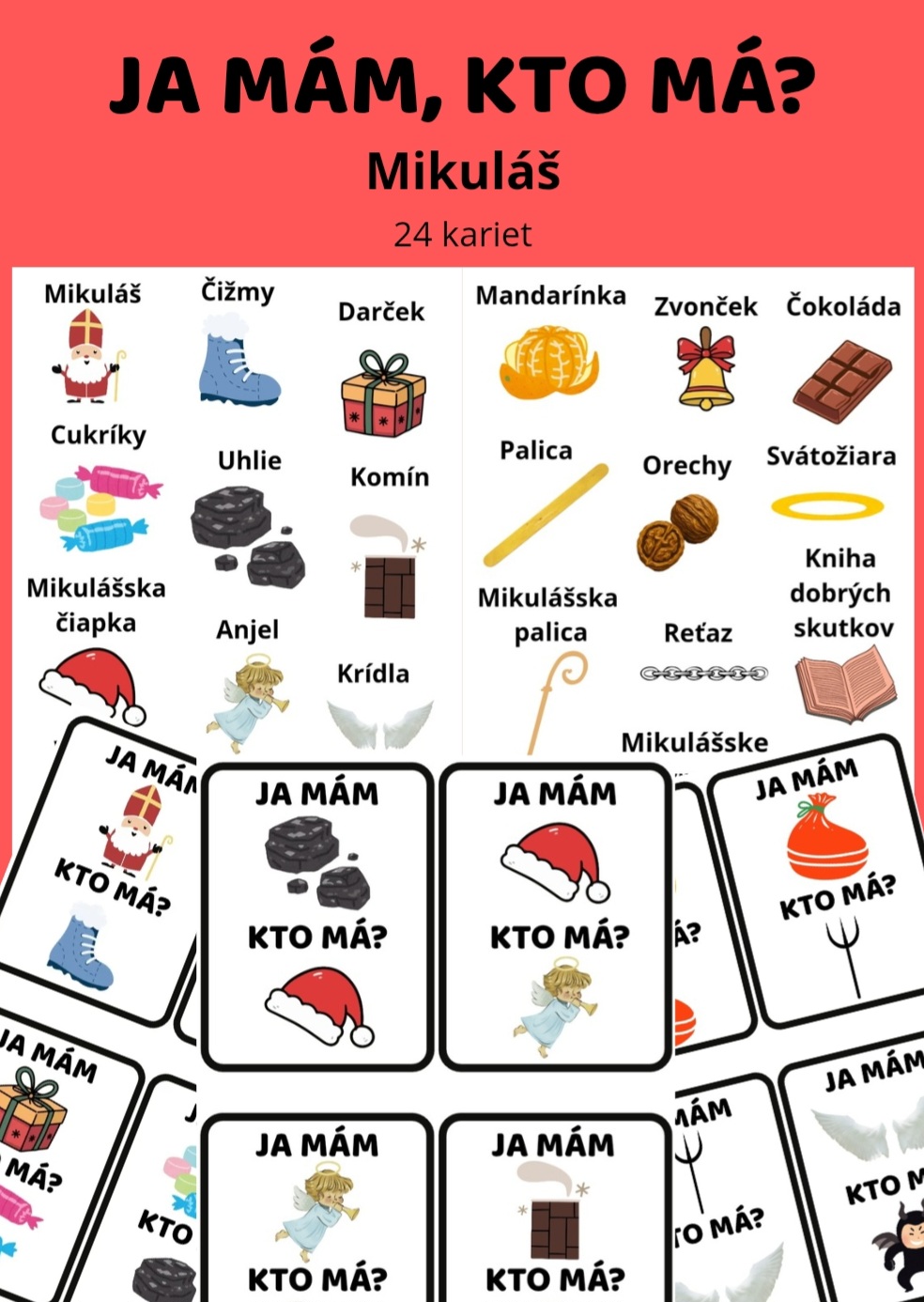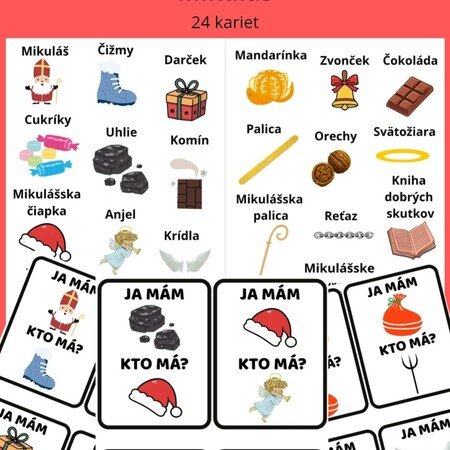 - sadu kartičiek „Ja mám, kto má“ s témou Mikuláša, anjelov, čertov, darčekov a zimných symbolov