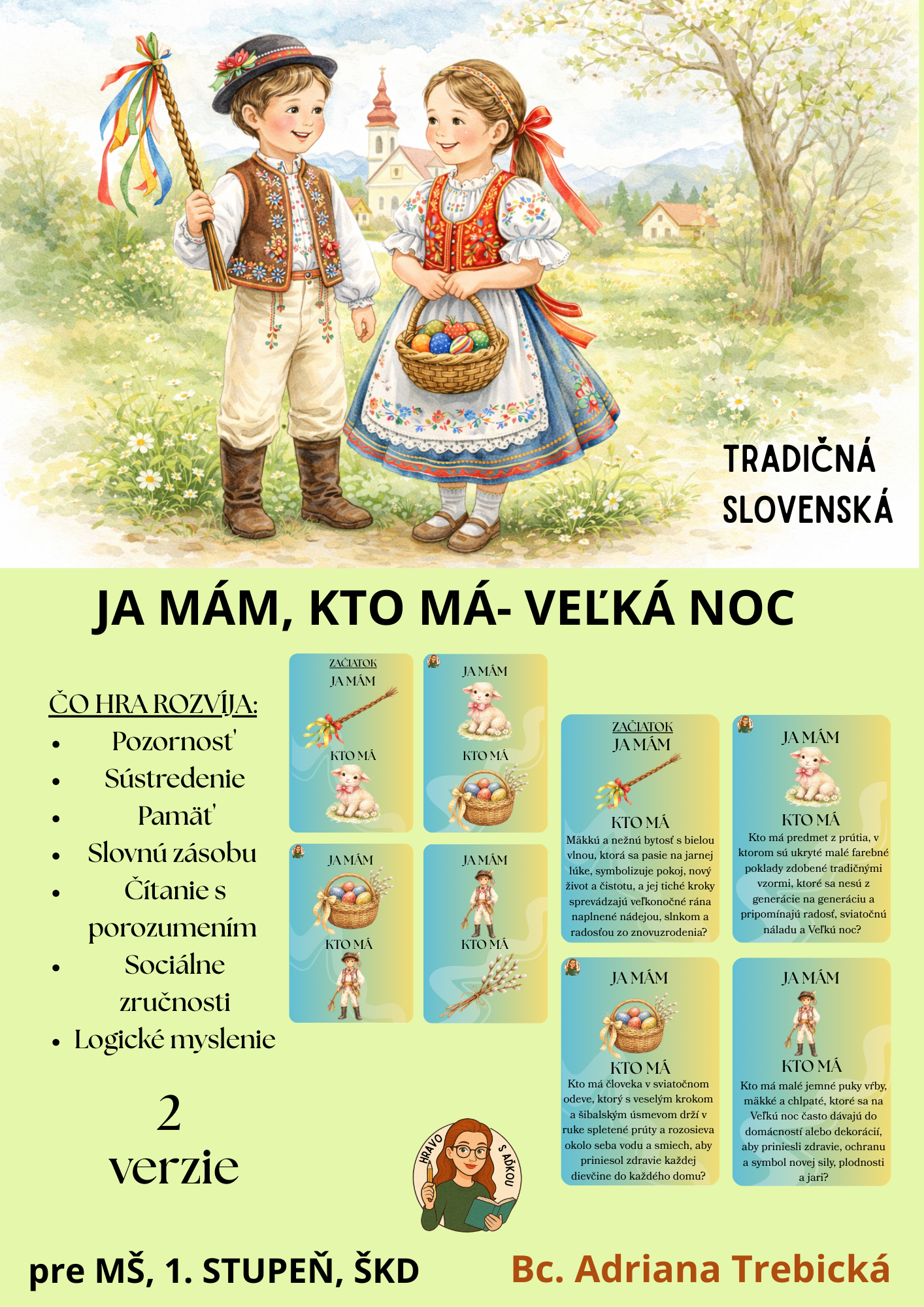 Hra, ktorá rozvíja pozornosť, pamäť a slovnú zásobu vašich detí a zároveň je zábavná? Moja jarná verzia hry „Ja mám – kto má?“ je ideálna pre MŠ, 1. stupeň ZŠ aj ŠKD!