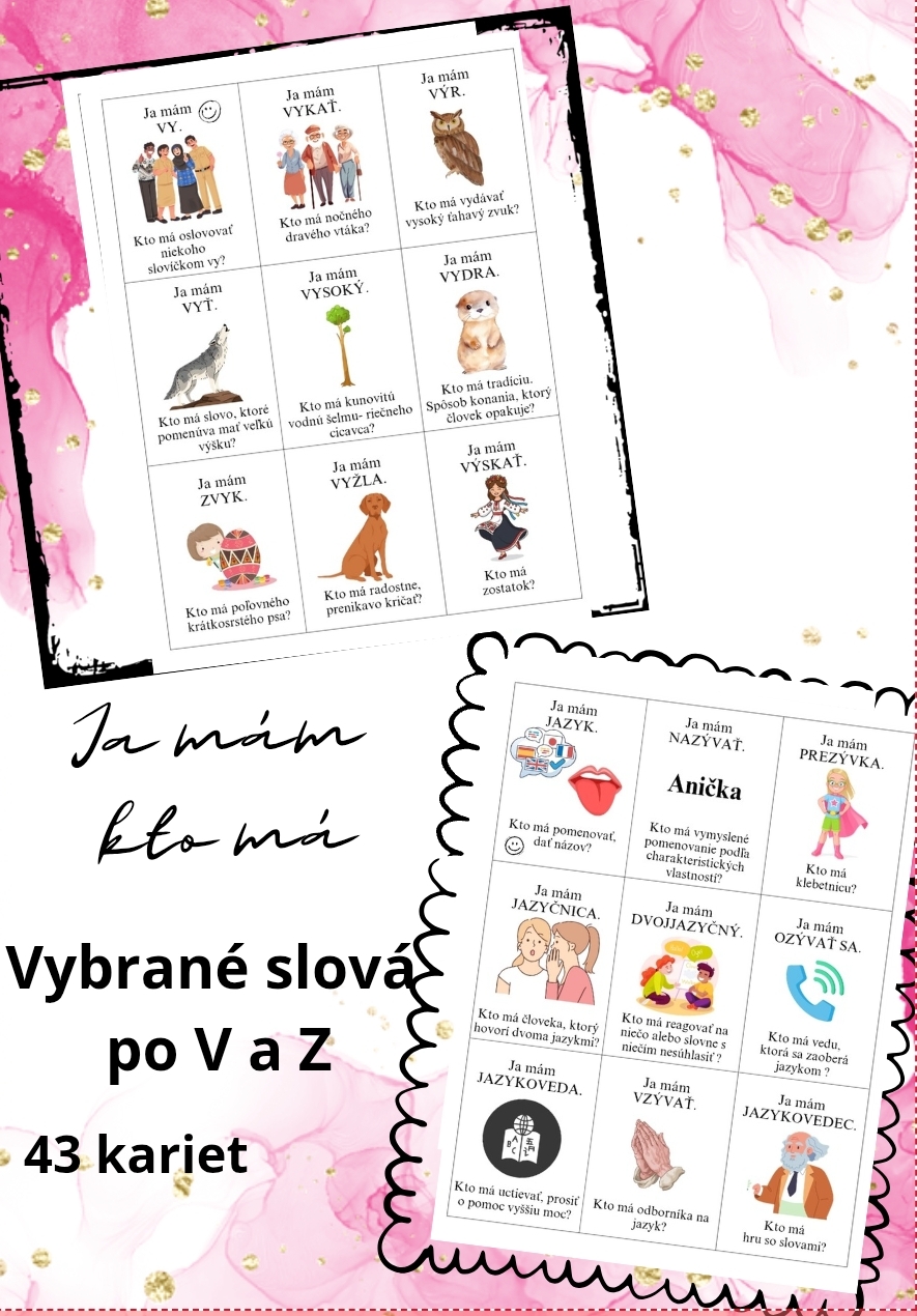 Posledná kartička po V sa nachádza na konci vybraných slov po Z.