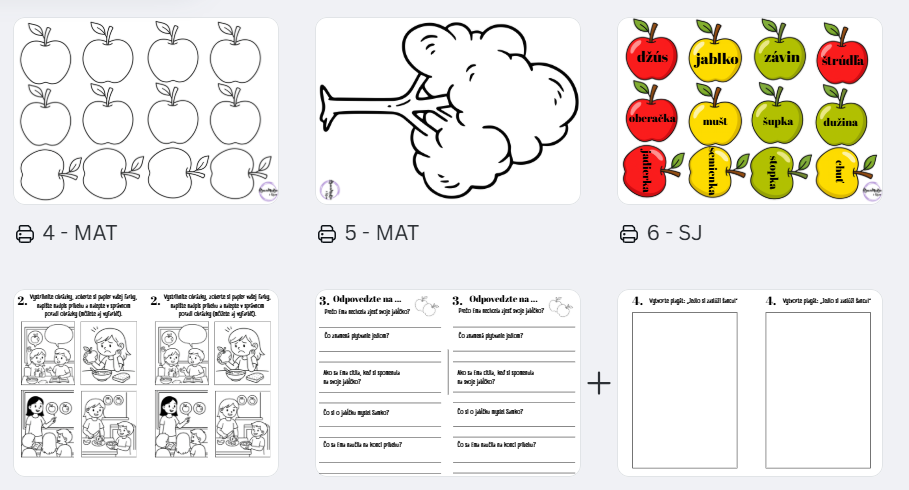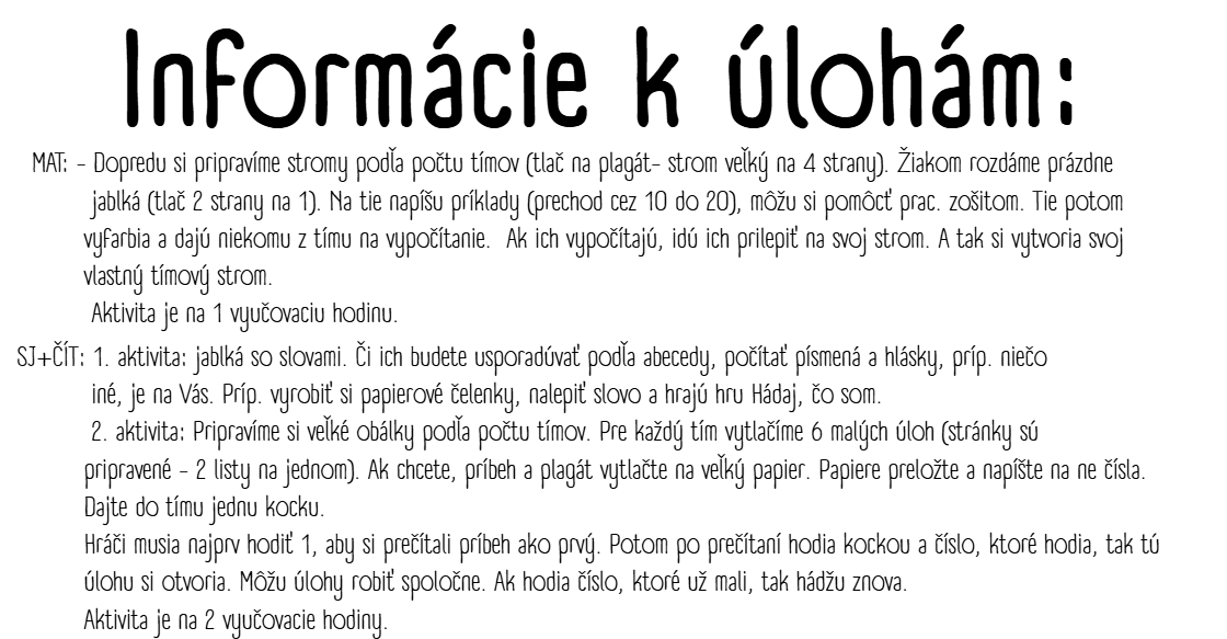 Mat: Tvorba matematických jabĺčok, ktoré nalepia žiaci na strom.