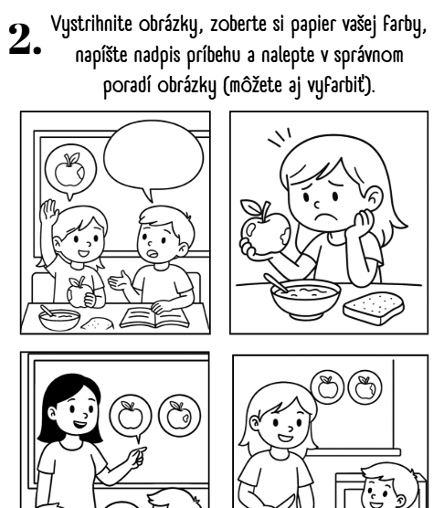 Č: Aktivita s kockou - 6 úloh (príbeh, otázky k príbehu, poradie, tvorba plagátu, hľadaj zaujímavosti, skús pokračovať v príbehu) ktoré plnia postupne - podľa toho ako hodia kockou.