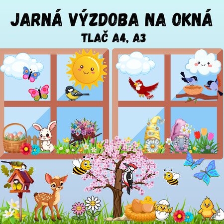 - Súbor obsahuje veselé farebné jarné obrázky, ktoré sú vhodné ako výzdoba na okná v triedach, chodbách alebo na nástenku. Obrázky, ktoré sa nachádzajú v náhľade, sú tiež súčasťou súboru.