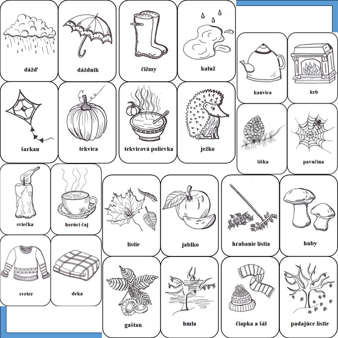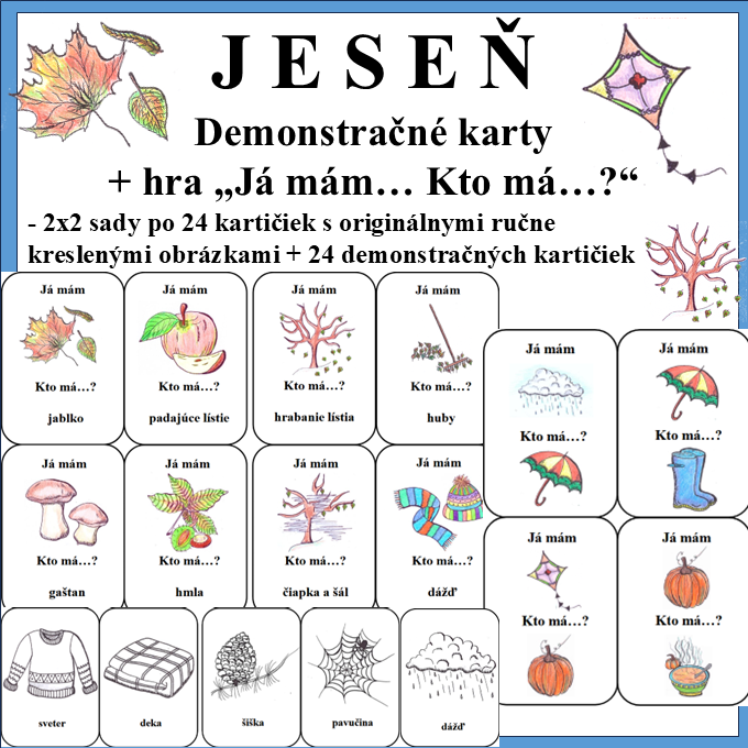 Materiál ďalej obsahuje 24 čiernobielych demonstračných kartičiek i na vyfarbovanie.