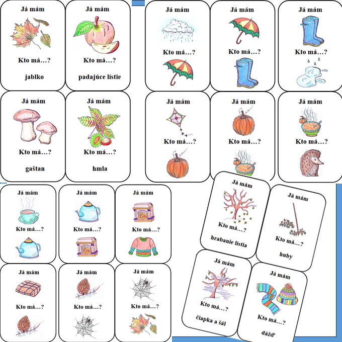 9 strán formátu A4 – 2×2 sady po 24 kartičiek s originálnymi ručne kreslenými obrázkami so slovíčkom. Jedna sada je určená pre čitateľov, druhá – ľahšia varianta – pre mladšie deti.