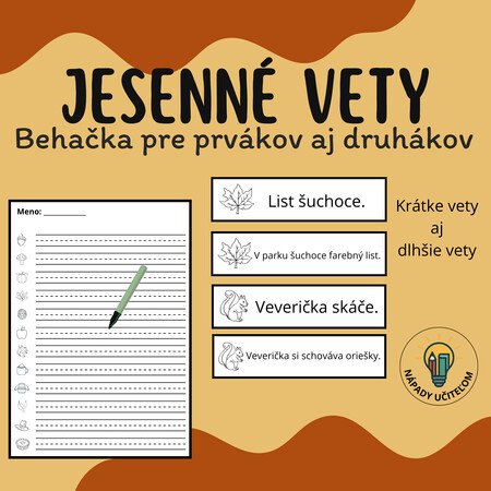 - Jednotlivé obrázky s vetami rozmiestnite po triede/chodbe/vonku. Žiakom rozdajte pracovný list pre odpis viet. Žiaci bežia k vetám, prečítajú si vetu a zapamätajú. Následne bežia k svojim pracovným listom ,kde vďaka obrázku vetu zapíšu.