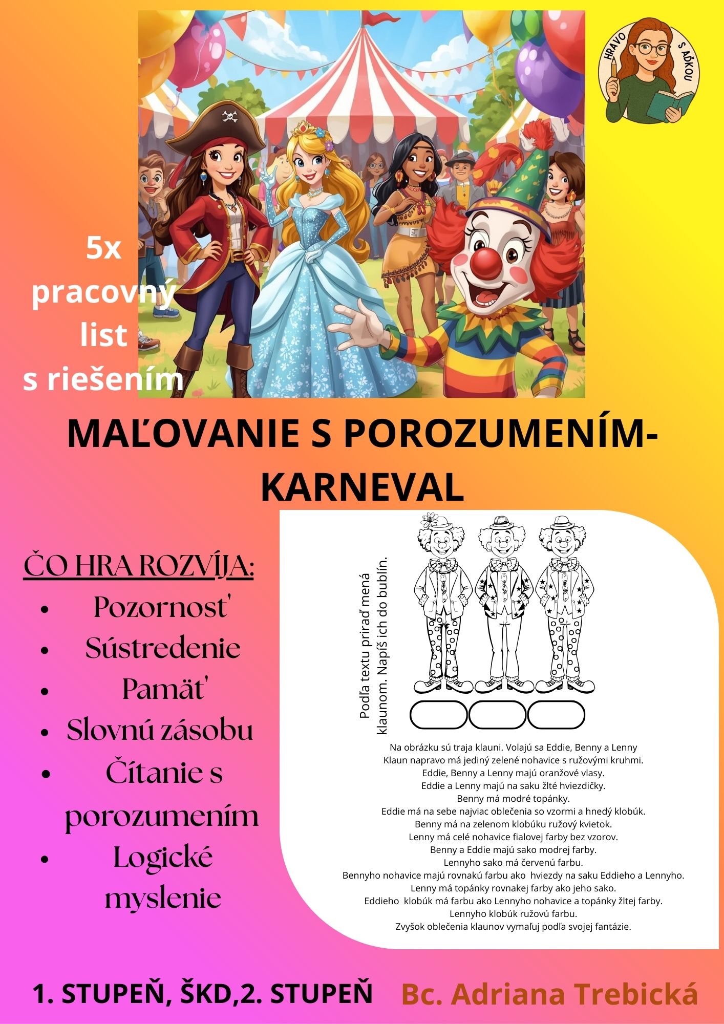 Maľovanie s porozumením – Karneval je skvelou kombináciou logického myslenia, čítania a tvorivej zábavy pre triedu, ŠKD alebo domáce prostredie.