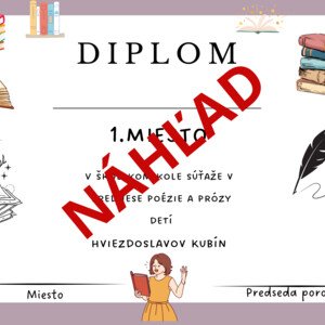 Súbor obsahuje 3 diplomy - 1. miesto, 2. miesto, 3. miesto za prednes poézie a prózy v školskom kole literárnej súťaže